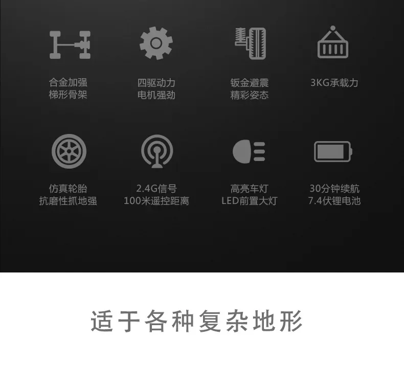 2.4G,模型车底,前进后退,改装升级,左转右转玩耍时间30分钟左右/