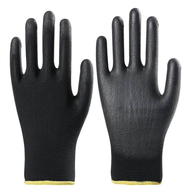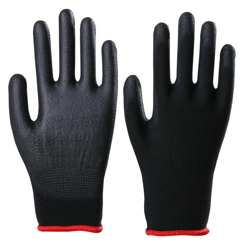 10 pairs Black Pu Gloves Polyester Shell Customized With Pu Coated Palm Safety Work Gloves En388 Pu Coated Gloves