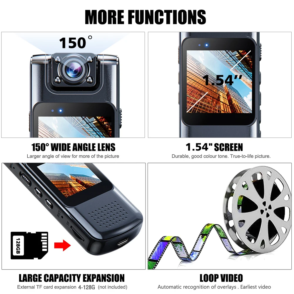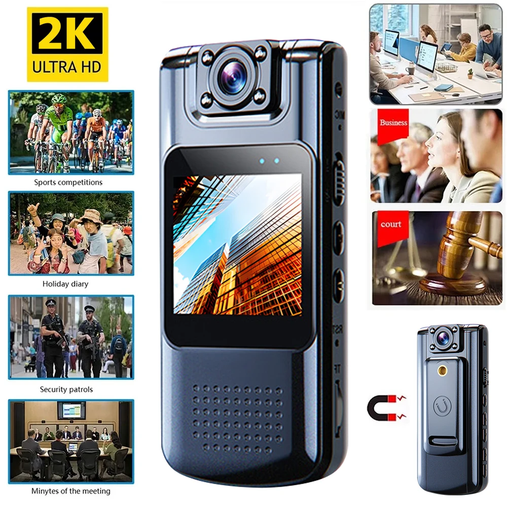 1080P/ 2K Sports Camera Handheld Camera Action Recorder WiFi IR Night Vision Camera with Magnetic Clip Back Clip