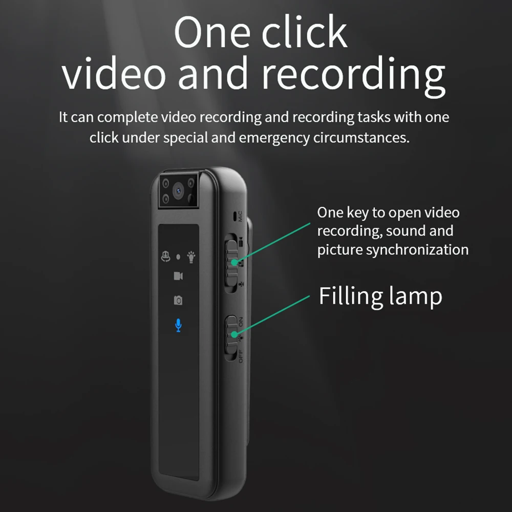 6.One click recording and recording, which can be completed with just one click in special or emergency situations. One click enables recording/sound screen synchronization, and one click fill light.