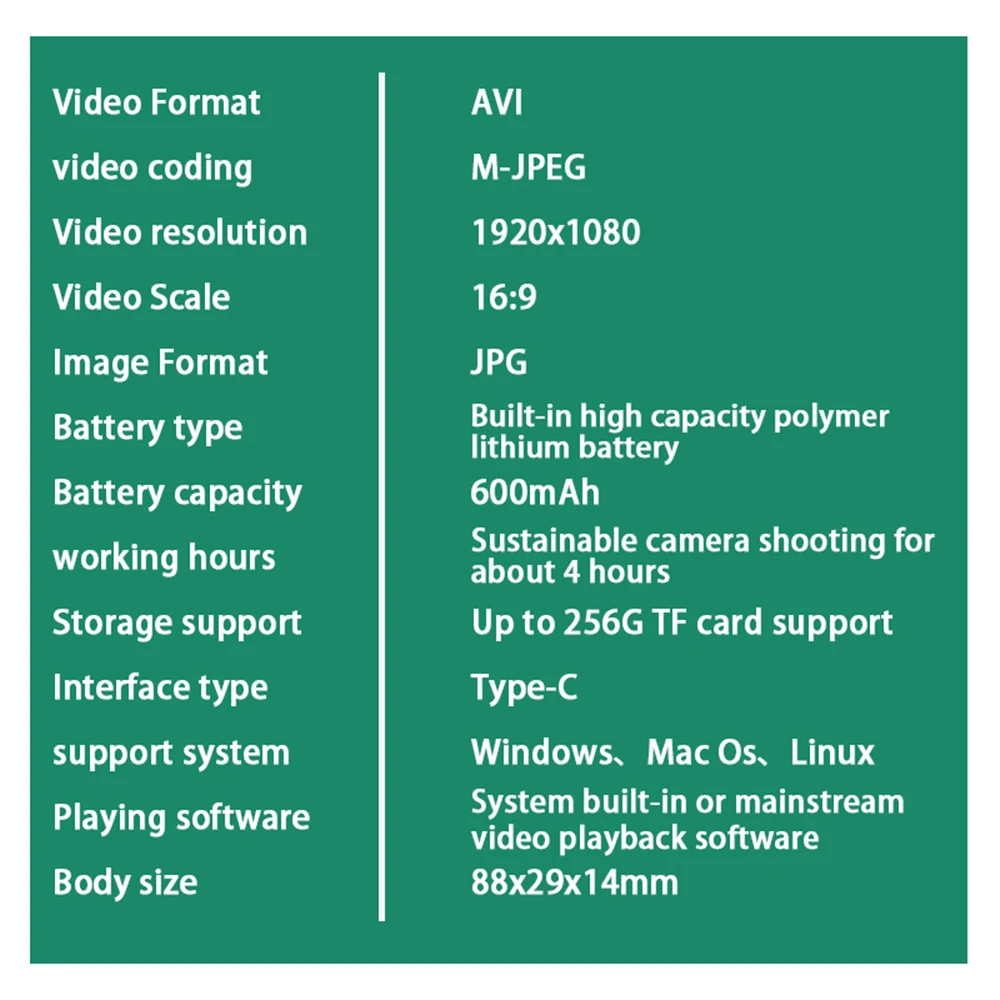 Long recording time: Video recording for about 5 hours