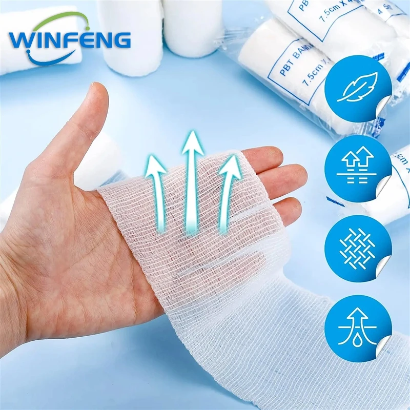 10Pcs Emergency First Aid PBT Elastic Bandages Breathable Cotton Wound Care Dressing Gauze Medical Nursing Survival Kits