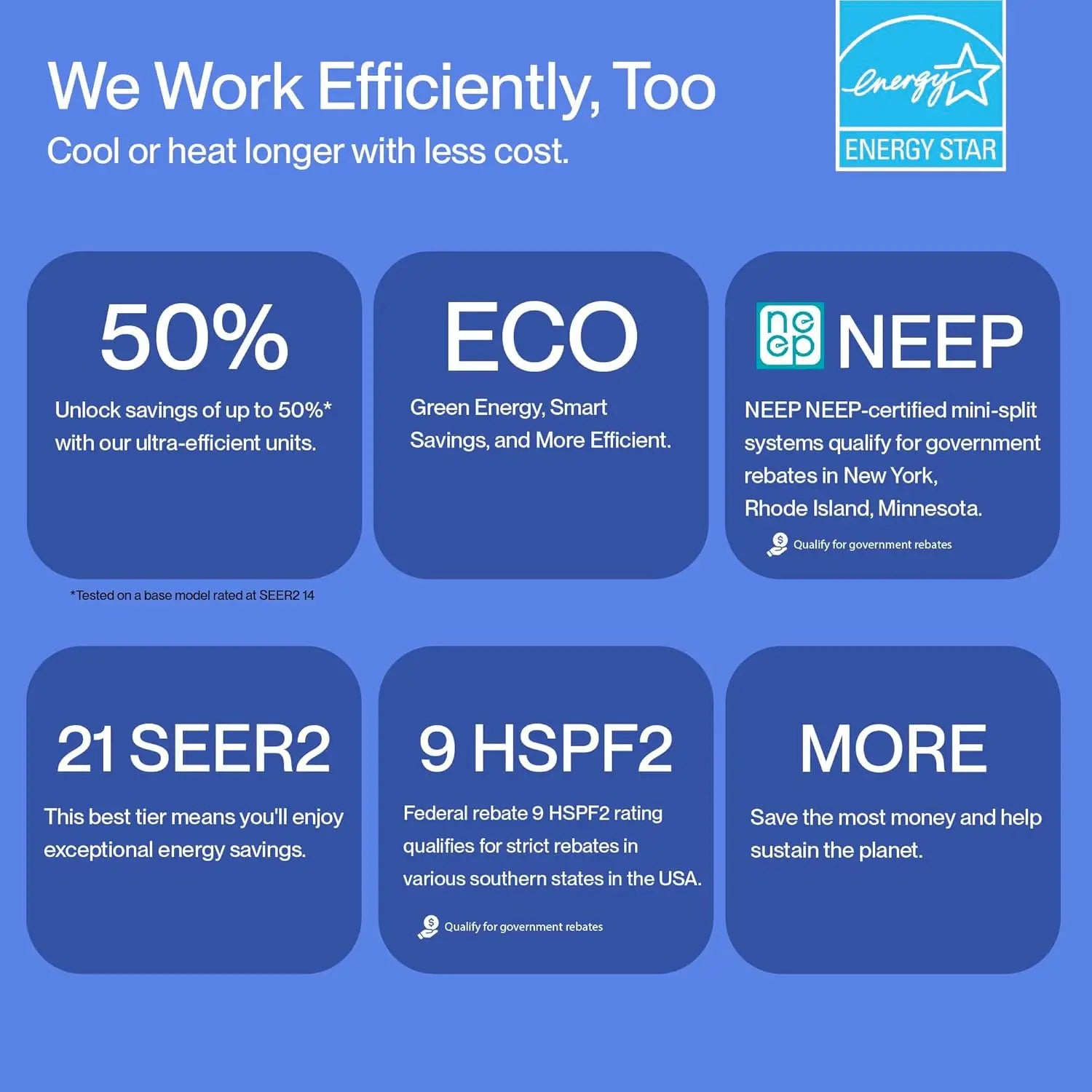 12000 BTU Mini Split AC 21 SEER2 Cools Up to 550 Sq.Ft Wifi Enabled Air Conditioner & Heater with 1 Ton Pre-Charged Heat Pump