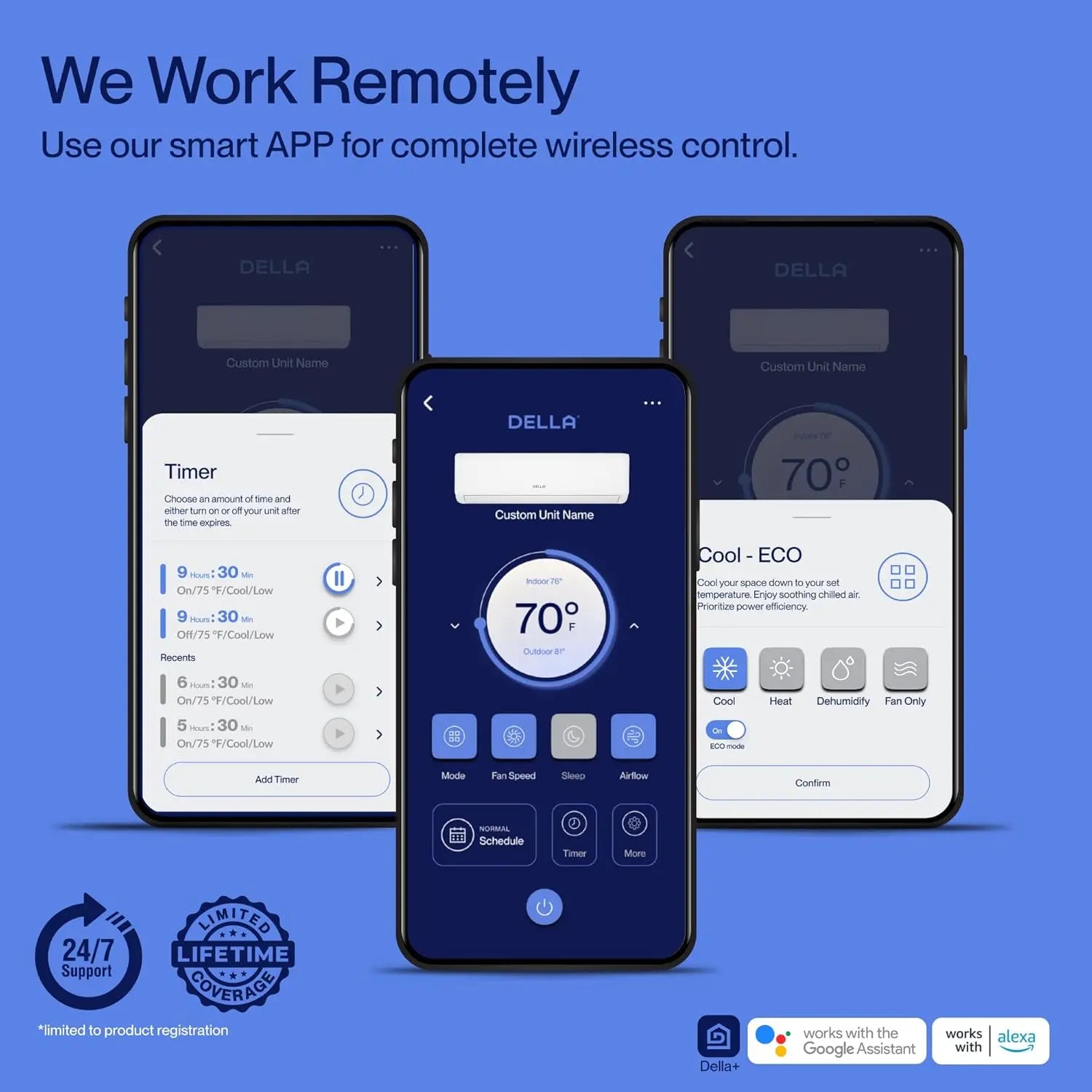 The compressor, located in the outdoor condenser, is the primary noise source in an AC system. The Della Mini Split operates quietly at just 25 dB, much lower than the typical 51 dB noise level of most window and portable AC units.