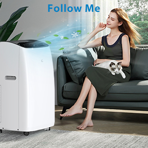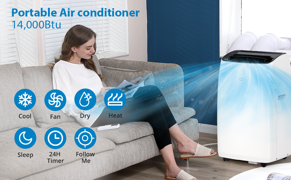 14000 BTU Portable Air Conditioner and Heater,Smart Inverter AC Units with Remote,Dehumidifier,Rooms Up to 750 Sq. Ft,42dB