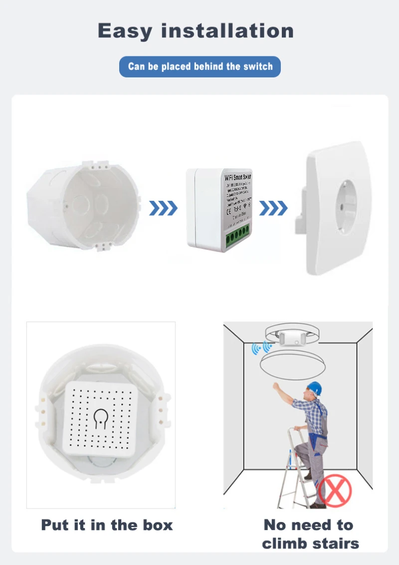 Such as refitting a desk lamp into a smart desk lamp, and the mobile phone can control the switch of the light. To turn the downlight into a smart downlight, you only need to connect a smart switch module to the switch, and then Alexa/Google assistant can control the light switch.