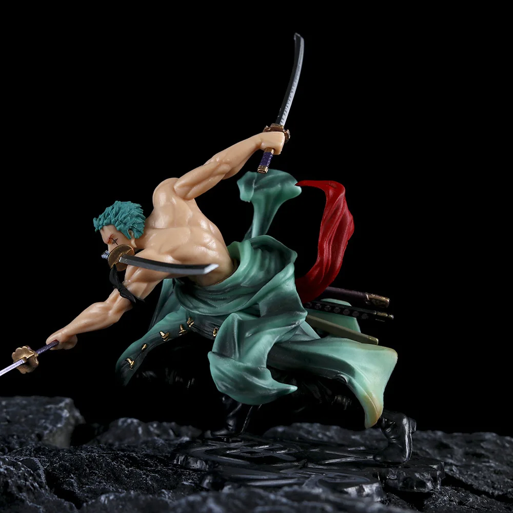 18CM One Piece Banpresto Anime Roronoa Zoro Three Knives Standing PVC Action Figure Collection Cool Model Decor Toys Kids Gifts