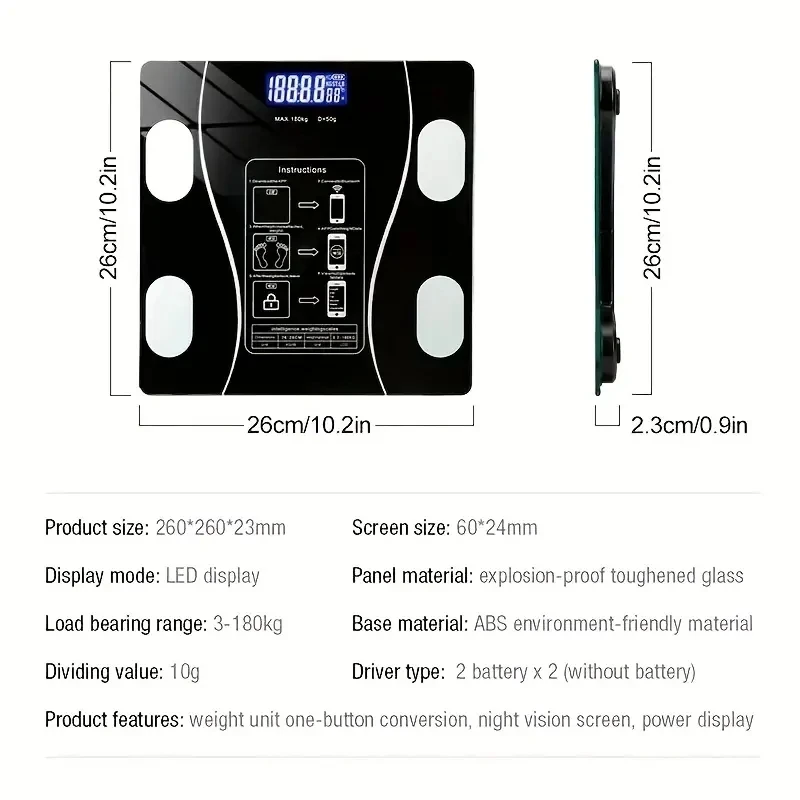 1. Comfortable weighing experience: The ergonomic design of the scale, with a size of 260x260, provides a comfortable weighing experience, making it easy to achieve balance when stepping on the scale.
