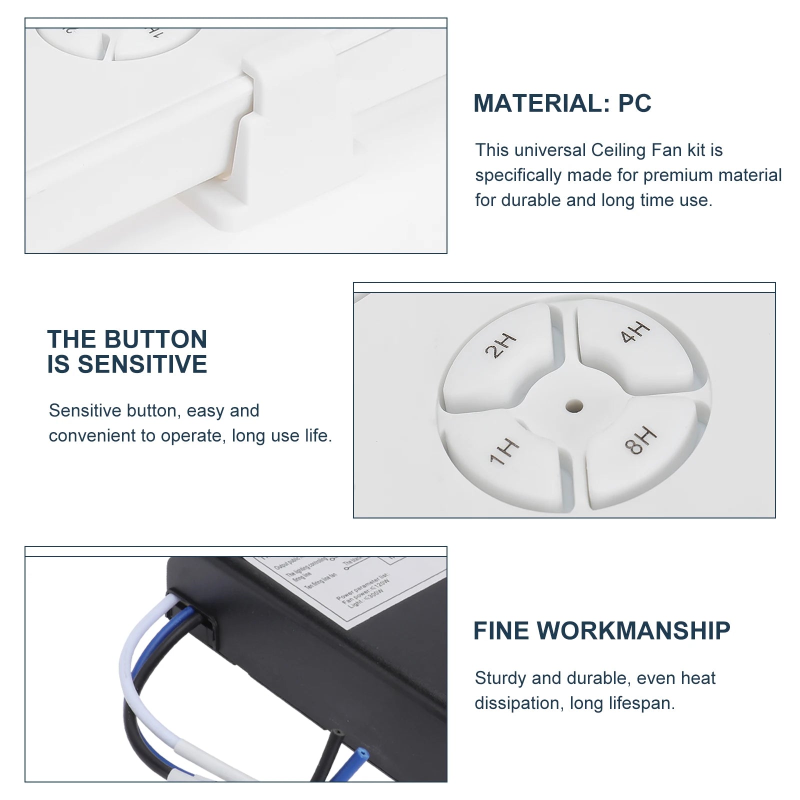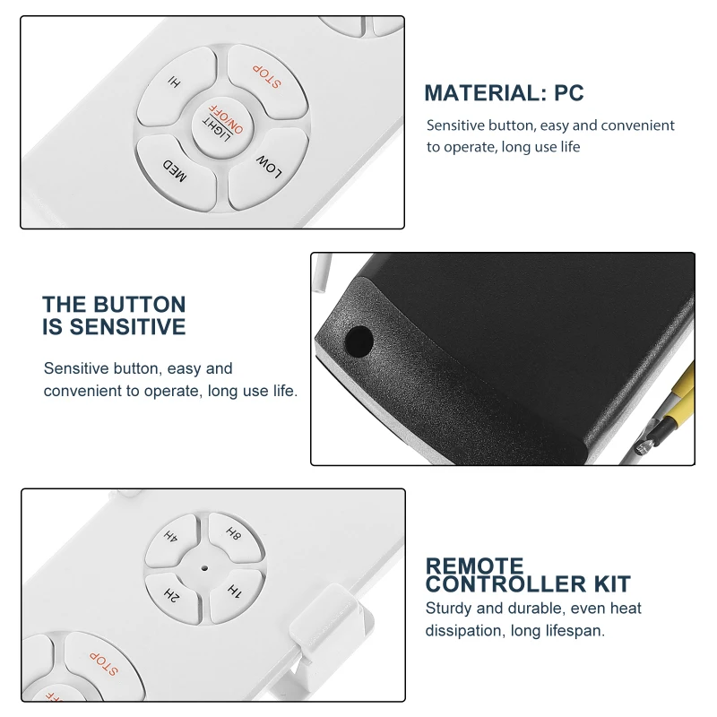 This universal Ceiling Fan kit is specifically premium material for durable and long time use. It works with almost all regular ceiling fans. Installation is very easy and fast, It is a nice looking remote and with rubber textured buttons that are easy to press.