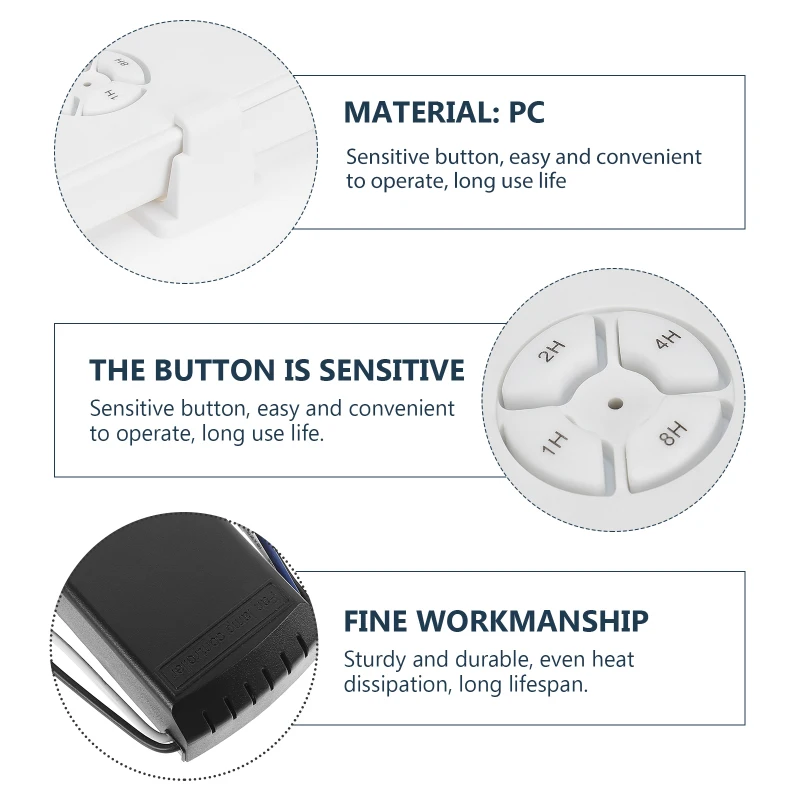 - 3 settings and 1h/2h/4h/8h timing function, convenient to use.