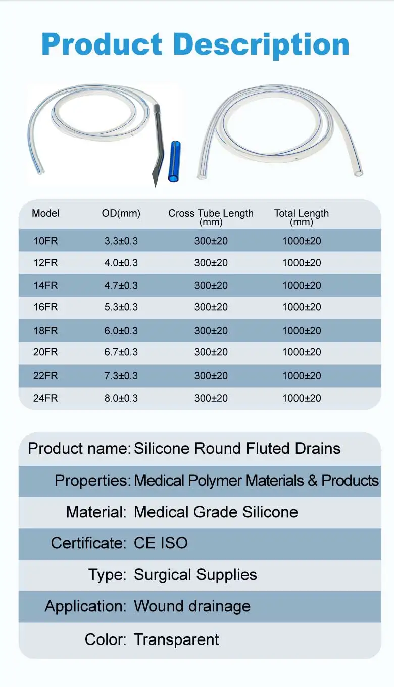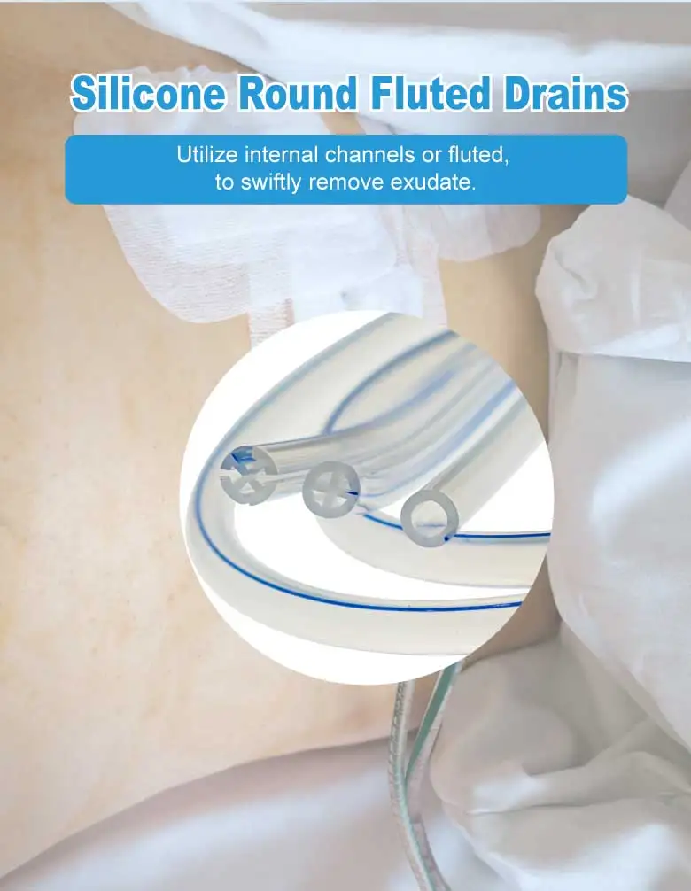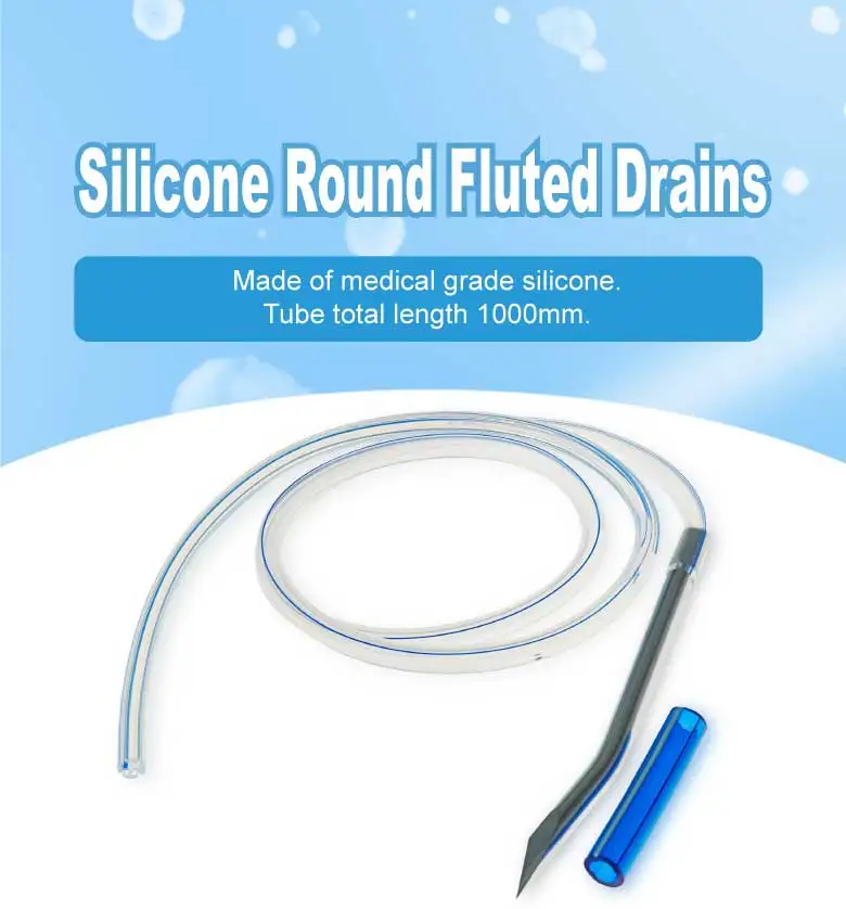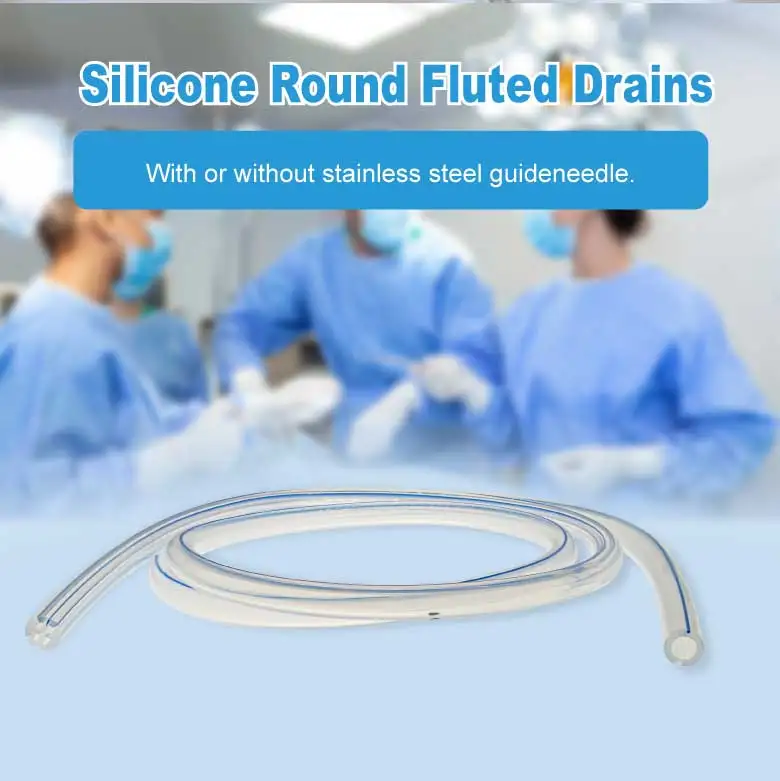 1PC Medical Silicone Round Fluted Drain Tube For Wound Drainage Surgical Supplies Cross Drainage Tube with Or without Needle