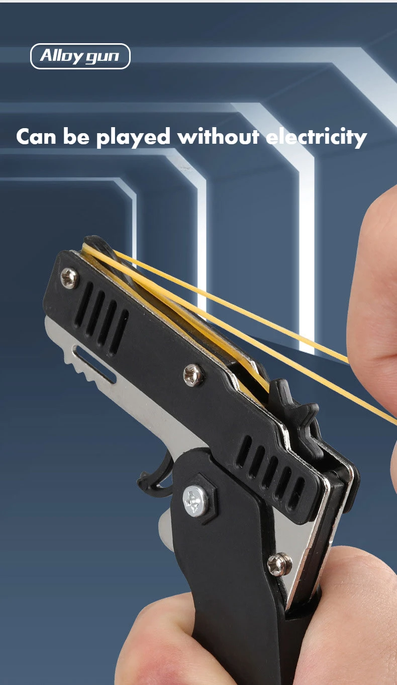 You can play without electricity, burst design, pull the rubber band back, buckle the rubber band gear, and you can shoot it out.