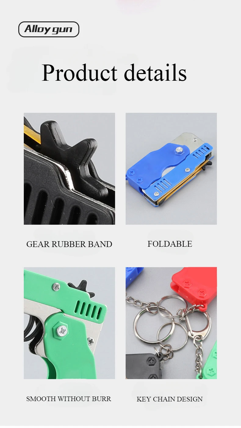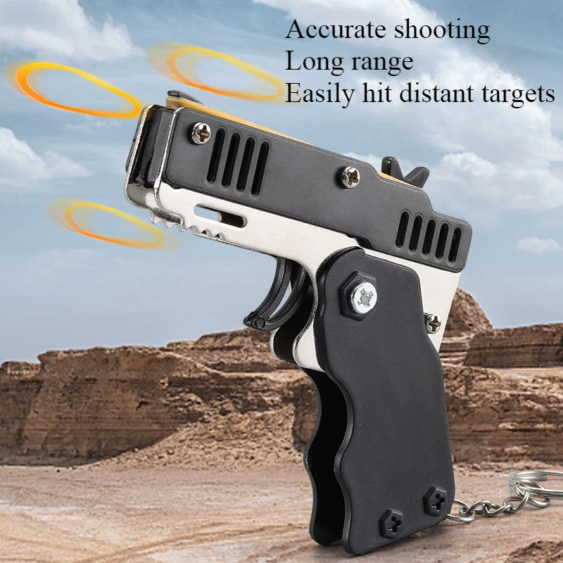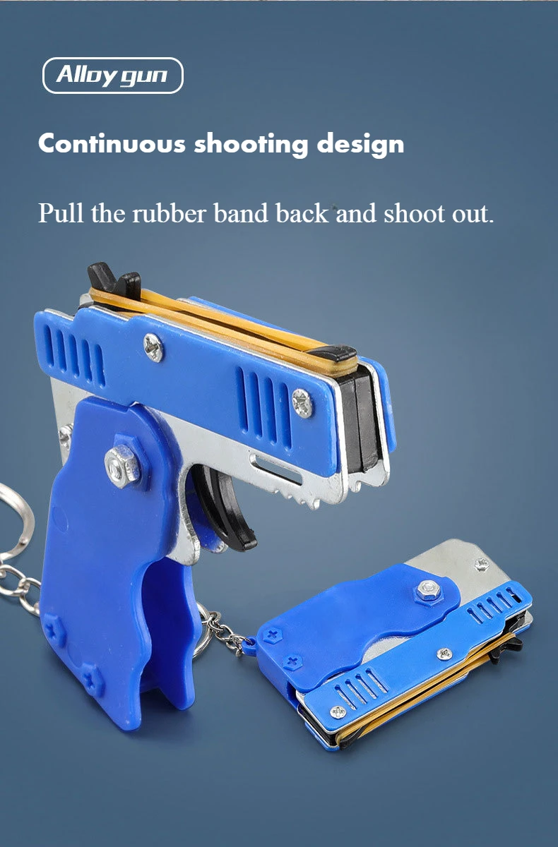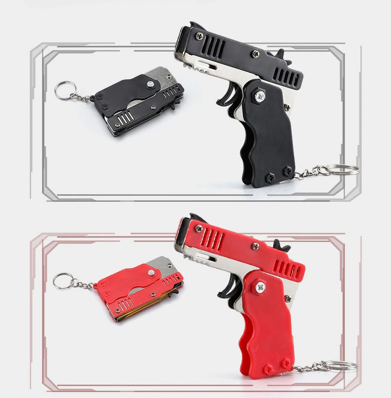 1. This is a keychain foldable pistol that is very suitable for indoor and outdoor play.