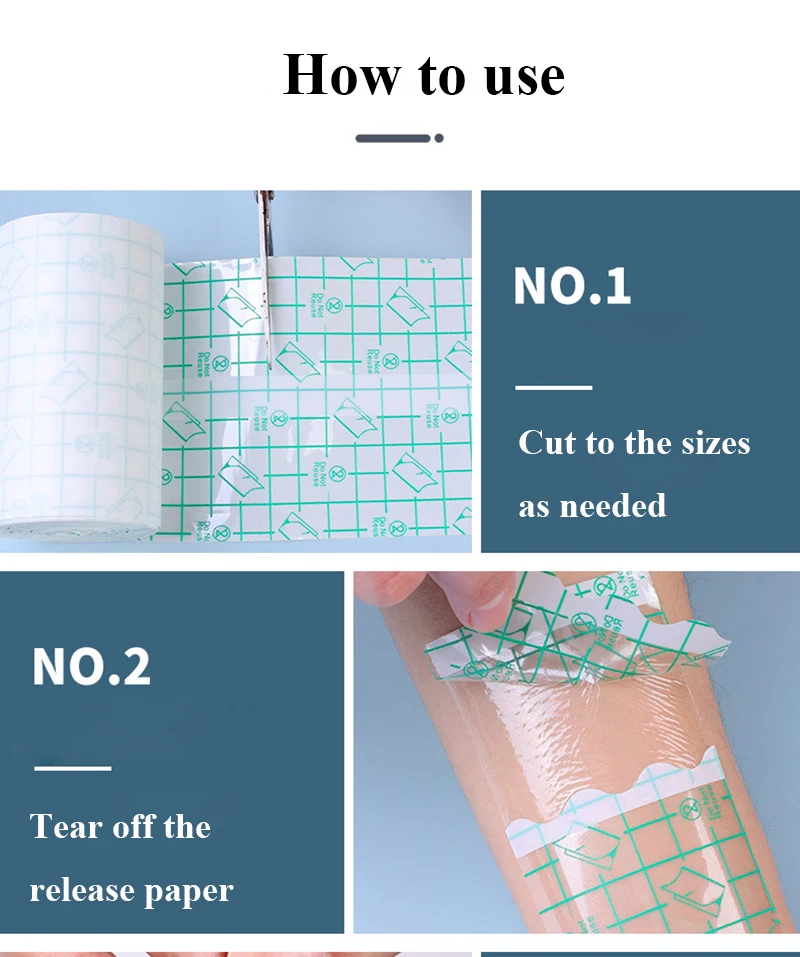 1Roll Waterproof Medical PU Film Tape Adhesive Anti-allergic Needle Wound Dressing Plaster Fixation Tattoo Repair PU Film Aftercare 10M