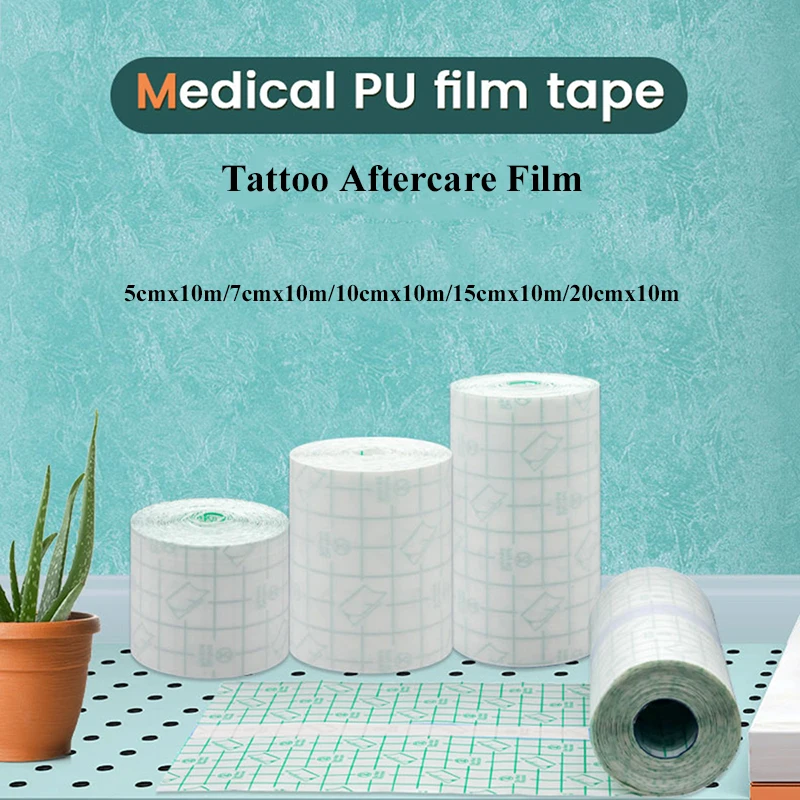1Roll Waterproof Medical PU Film Tattoo Aftercare Film Repair Sticker Tube Plaster Wound Dressing Fixation Transparent Tape 10M