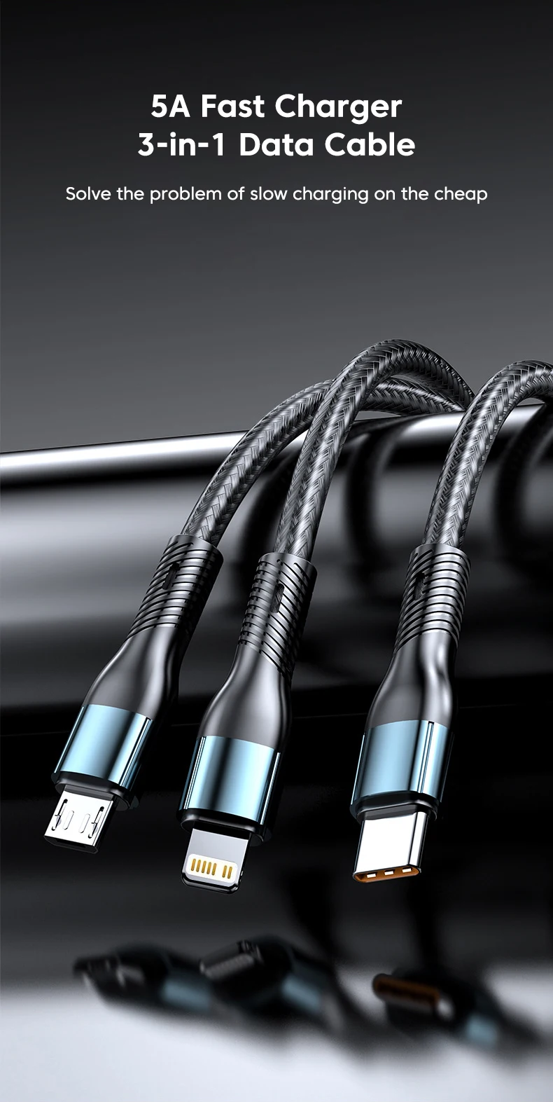 3 In 1 120W 6A Type C Super Fast Charging Cable For iPhone 14 13 12 11 X Pro Max Micro USB Type-C Phone Charger USBC Data Cable