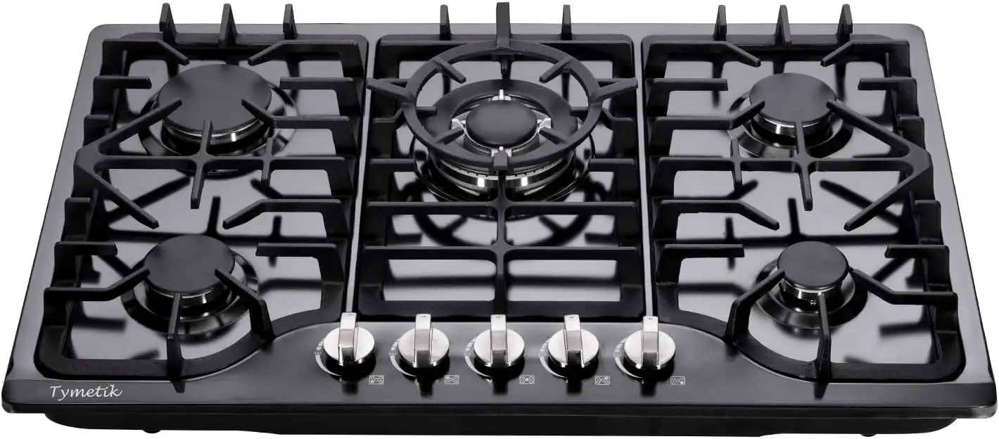 30 Inch Gas Cooktop Built-in Stainless Steel Gas Stovetop 5 High Efficiency Burners Gas Stove LPG/NG Convertible Hob (Black)
