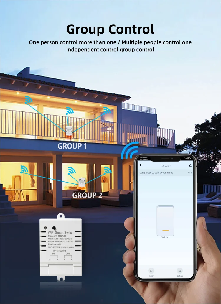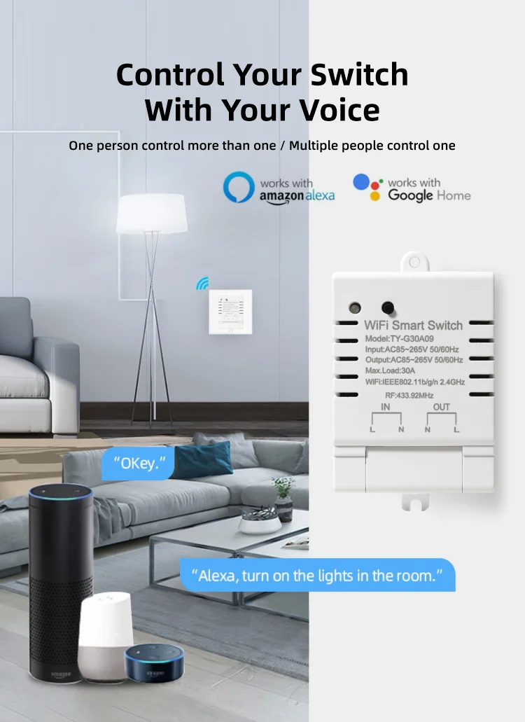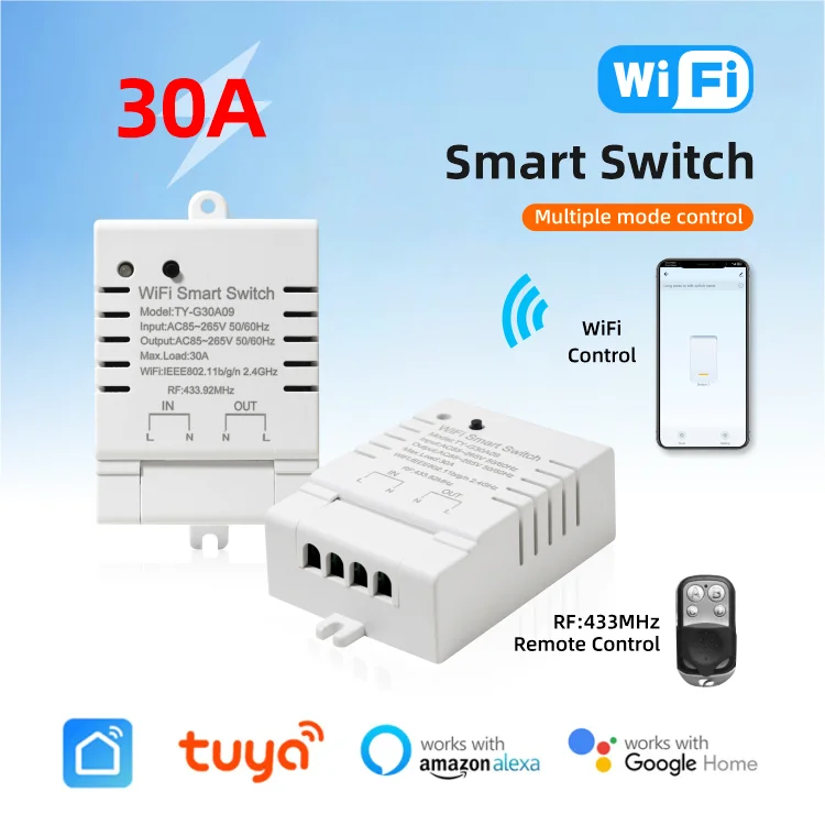 30A Tuya WiFi Smart Switch High-Power DIY Breaker Remote Controller Smart Home Support Alexa Google Home Yandex Alice