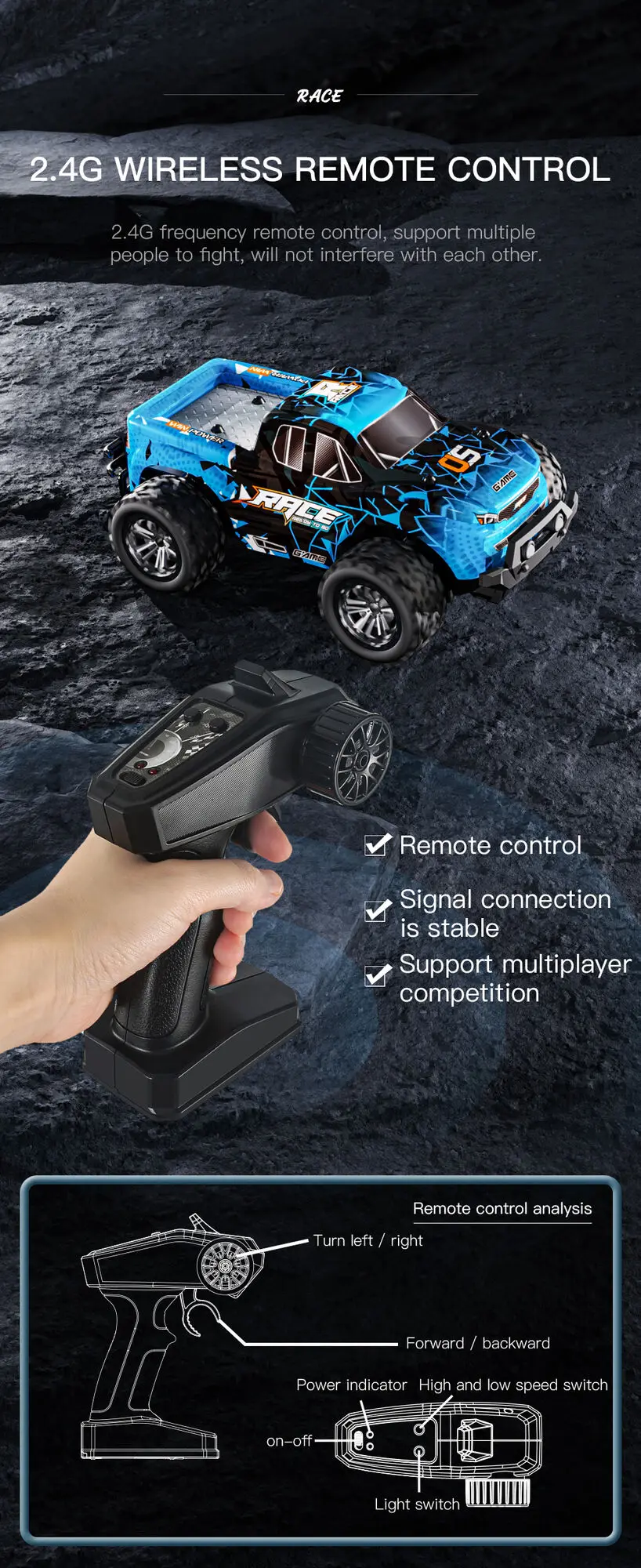 3699-087 2.4G RC Car 1/16 2WD Off-road Remote Control Climbing Vehicle 20KM/H Remote Control Anti-collision Settings kids toys