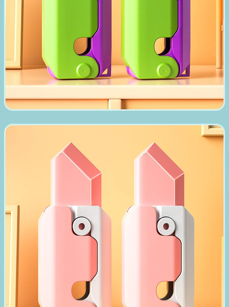 3D Carrot Gravity Plastic Knife Fidget Toys Foldable Decompressed Push Card Small Toy 3D Printing Carrot Radish Knife