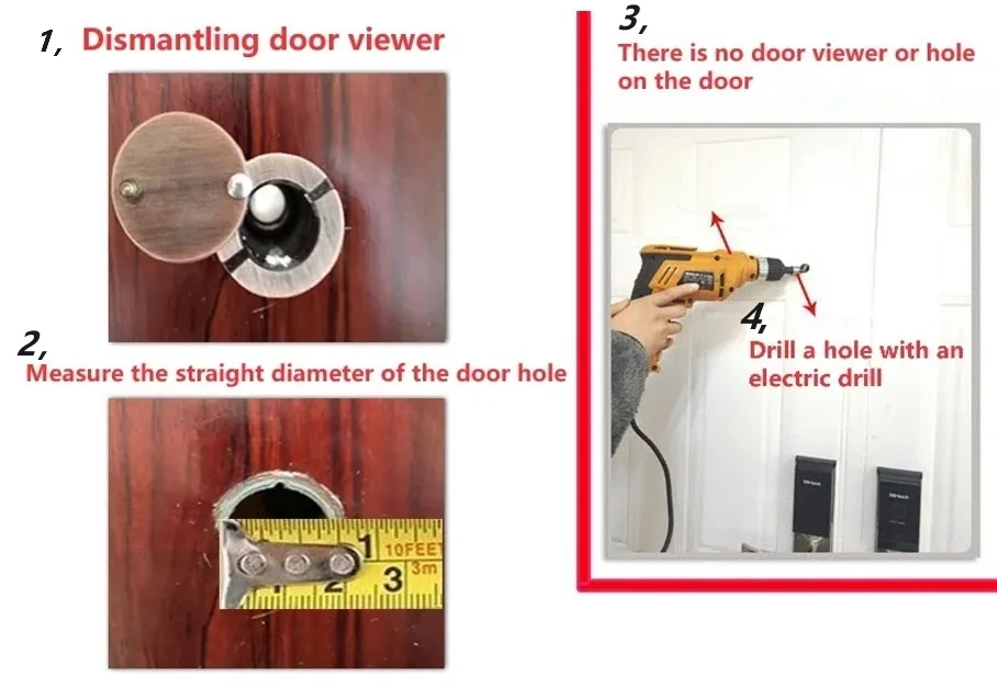 There is no door viewer or door hole on the door, so an electric drill is needed to open a door hole