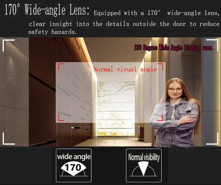 170° Wide-angle Lens: Equipped with a 170° wide-angle lens, clear insight into the details outside the door to reduce safety hazards.