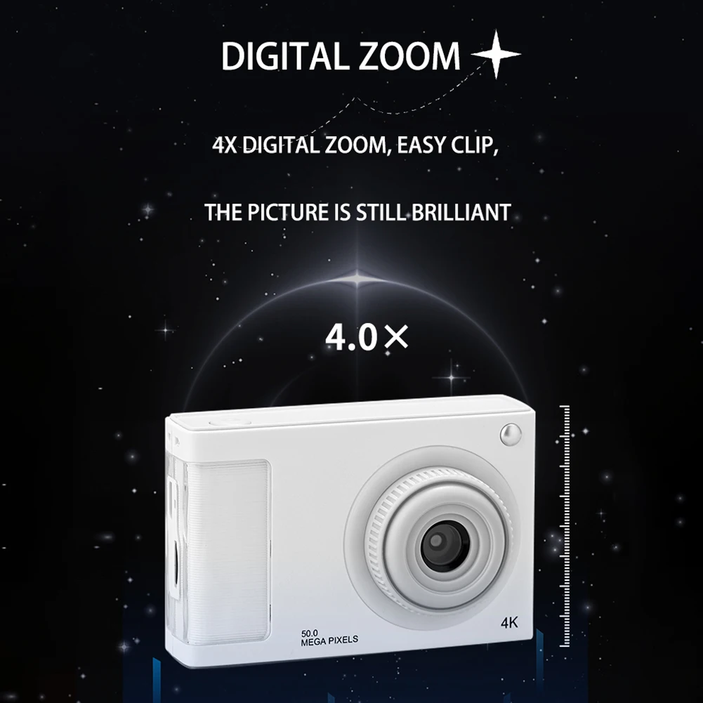 Note: 48MP HD Digital Camera 2.4in IPS Display 16X Zoom Student Selfie Camera Anti-Shak 4K Portable Camera with Fill Light for Kids Students Teens Feature: 1. Dual High-Resolution Cameras: The mini camera features front and rear dual cameras with 48 million high-definition pixels. With just one click, you can swiftly switch to selfie mode and capture beautiful moments in stunning clarity. 2. 1080P HD Video Recording: Enjoy the thrill of creation with our digital camera that offers 1080P high-definition video recording. It's perfect for crafting daily engaging vlogs and capturing all the fun moments in crystal-clear quality. 3. Versatile Features for Kids: Designed with kids in mind, this kids camera boasts an AF auto-focus feature ensuring every shot is crisp and clear. It supports 4x digital zoom, anti-shake, various filters, and a fill light, making it a multifunctional digital camera that provides a perfect shooting experience for the young photographer. 4. Long Battery Life: Equipped with a 600mAh large-capacity battery, our video camera ensures worry-free usage. It supports shooting while charging, allowing for continuous use and ensuring you never miss out on capturing any moment. 5. The Perfect Gift: Easy to use for anyone, this vlogging camera makes an ideal gift for Christmas, birthdays, parties, Thanksgiving, and more. Its simplicity and functionality make it a wonderful present that encourages creativity and fun. Specification: Origin: Mainland China Sensor Element Type: CCD Optical Zoom: 2x - 7x Special Feature: None Sensor Size (inches): 1/2.3 inches Image Resolution (Video): 1080i/P(1920*1080) Focal Length: 12 - 50mm Color: black, white, silver, pink (optional) Camera pixels: 48 million pixels Battery capacity: 600mAh Camera resolution: 1080P/720P/VGA Display: 2.4-inch IPS high-definition screen Zoom: 4x zoom Lens: 200W pixel lens Memory expansion: 64G Functions: dual front and rear cameras, video playback, zoom support, multiple filters, MP3 playback, long battery life, multiple borders, multiple mini games Gross weight: 212g Product size: about 91*59*23mm/3.58x2.32x0.91inch Packaging size: about 113*113*55mm