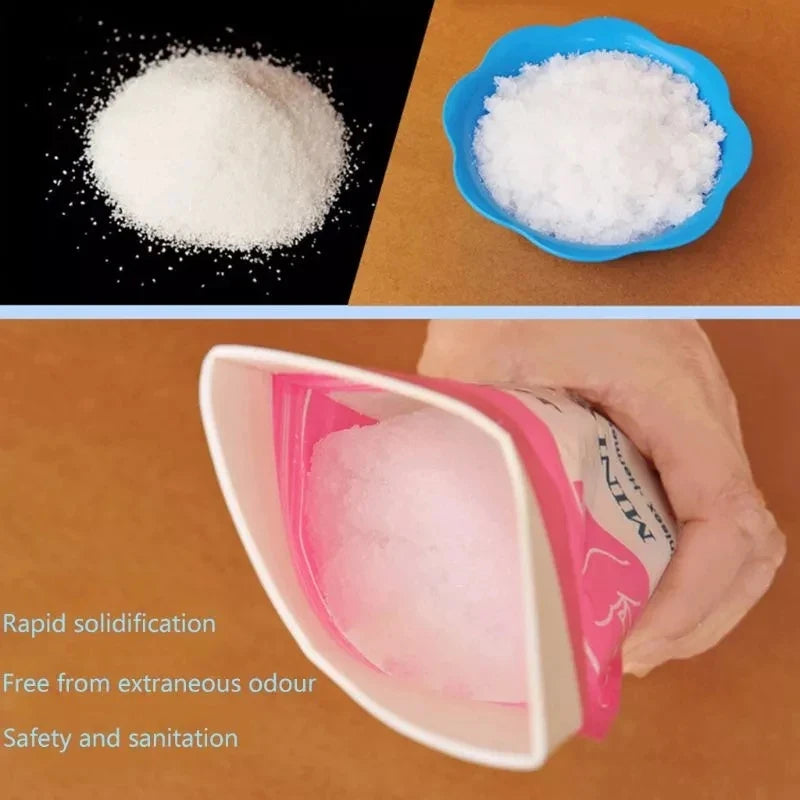 It instantly gels after absorption of liquid thus making it leak-proof, converts up to 700ml.