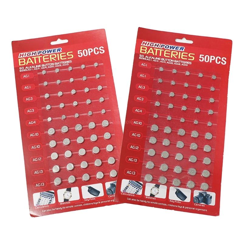 50Pcs Mixed Button Battery(AG1/3/4/10/12/13)