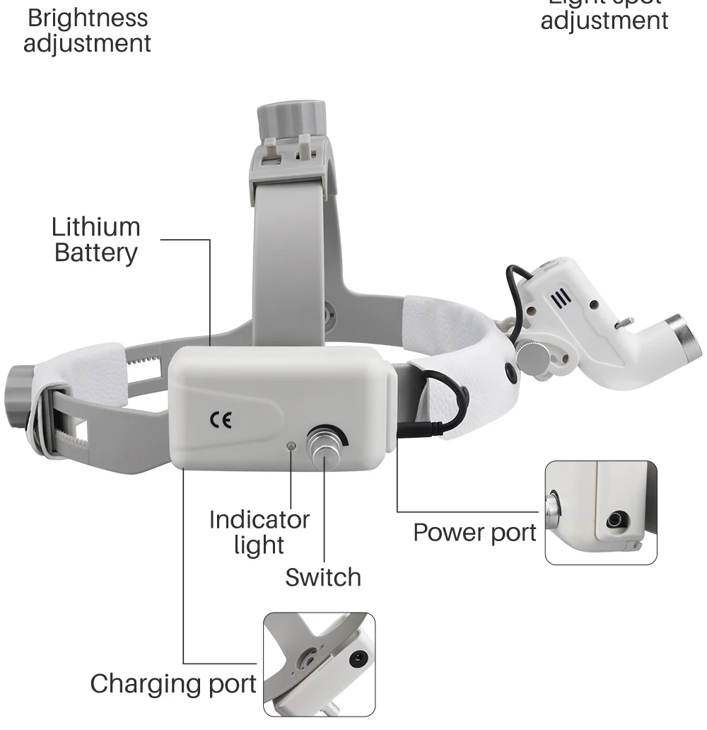 5W Dental LED Head Light Lamp For Binocular Loupes Brightness Spot Ajustable Dental Lab Headlamp Surgical Headlight