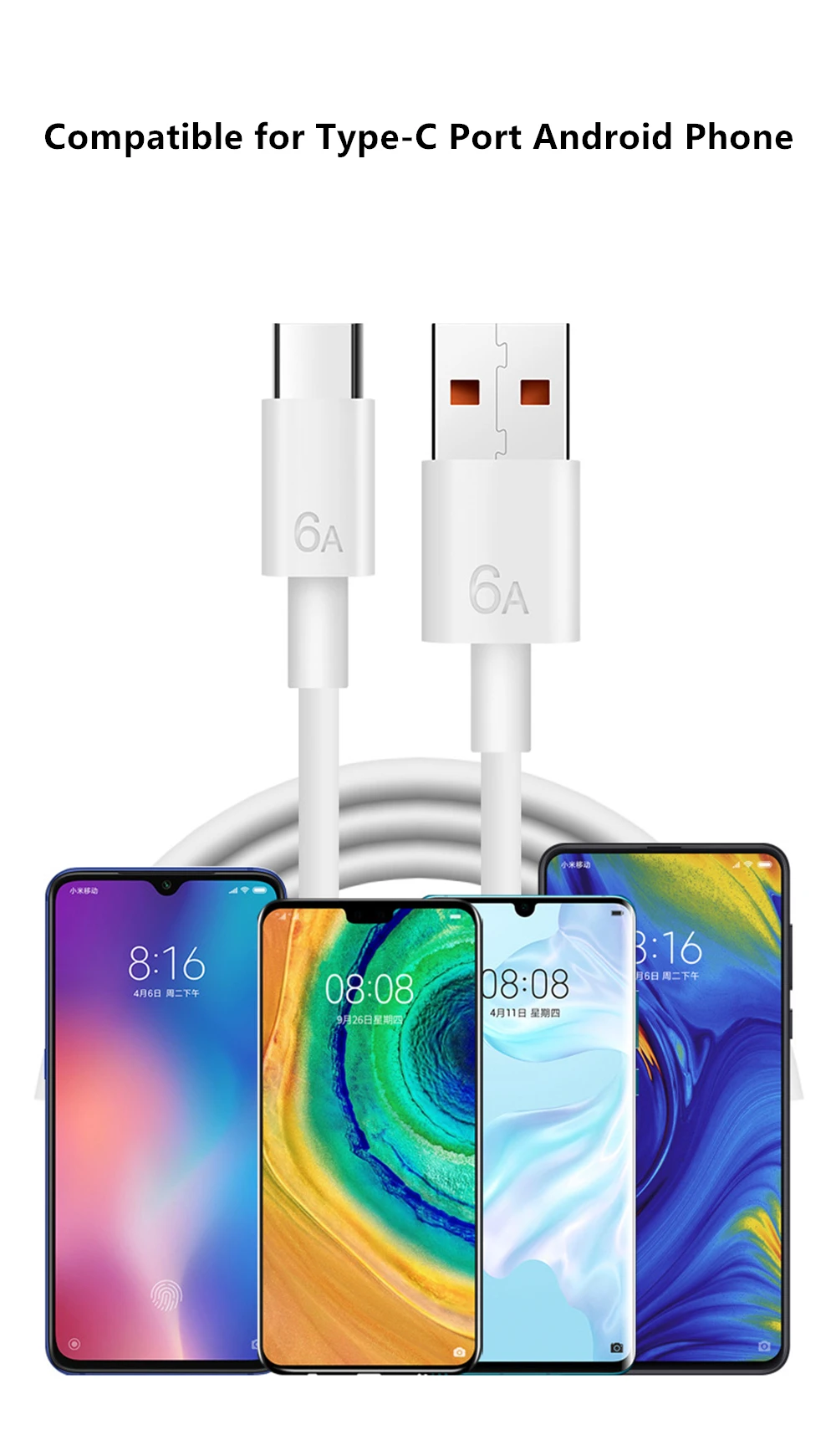 6A Super Fast Charging Type-C USB Cable for Huawei Honor Xiaomi Redmi OPPO VIVO realme iQOO Android Phone Quick Charger Cable 2m