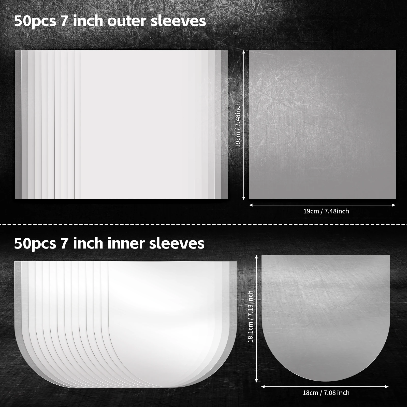 7 inch Vinyl Record Protecter EP Record Plastic Bags Anti-Static Record Sleeves Outer Inner Plastic Clear Cover Container 100PCS