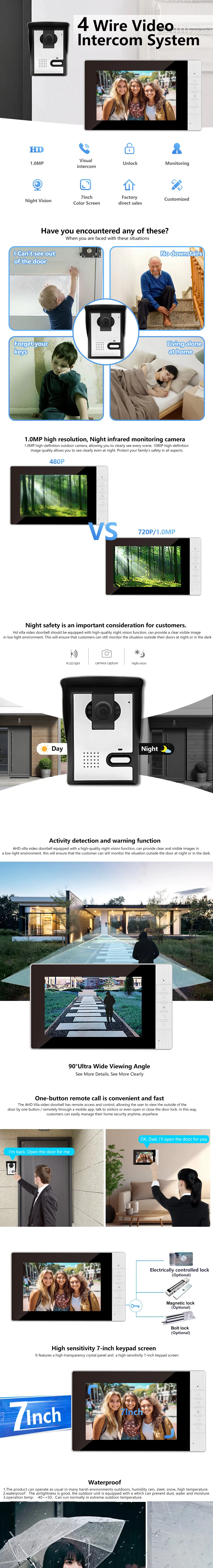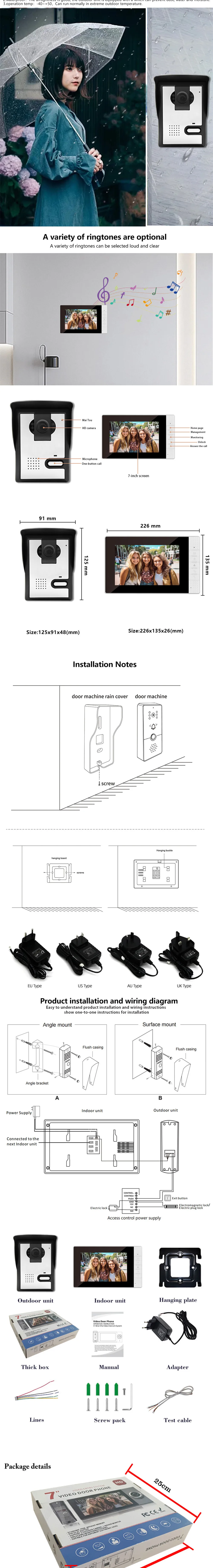 7Inch IPS Screen Wired Video Door Phone Intercom Visual Doorbell Peephole Viewer Door Camera