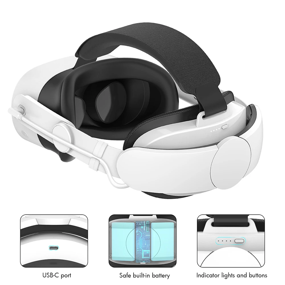 Adjustable Head Strap 6000mAh Battery Replacement Head Strap Extend VR Playtime Head Strap Battery Head Band for Meta Quest 3S/3