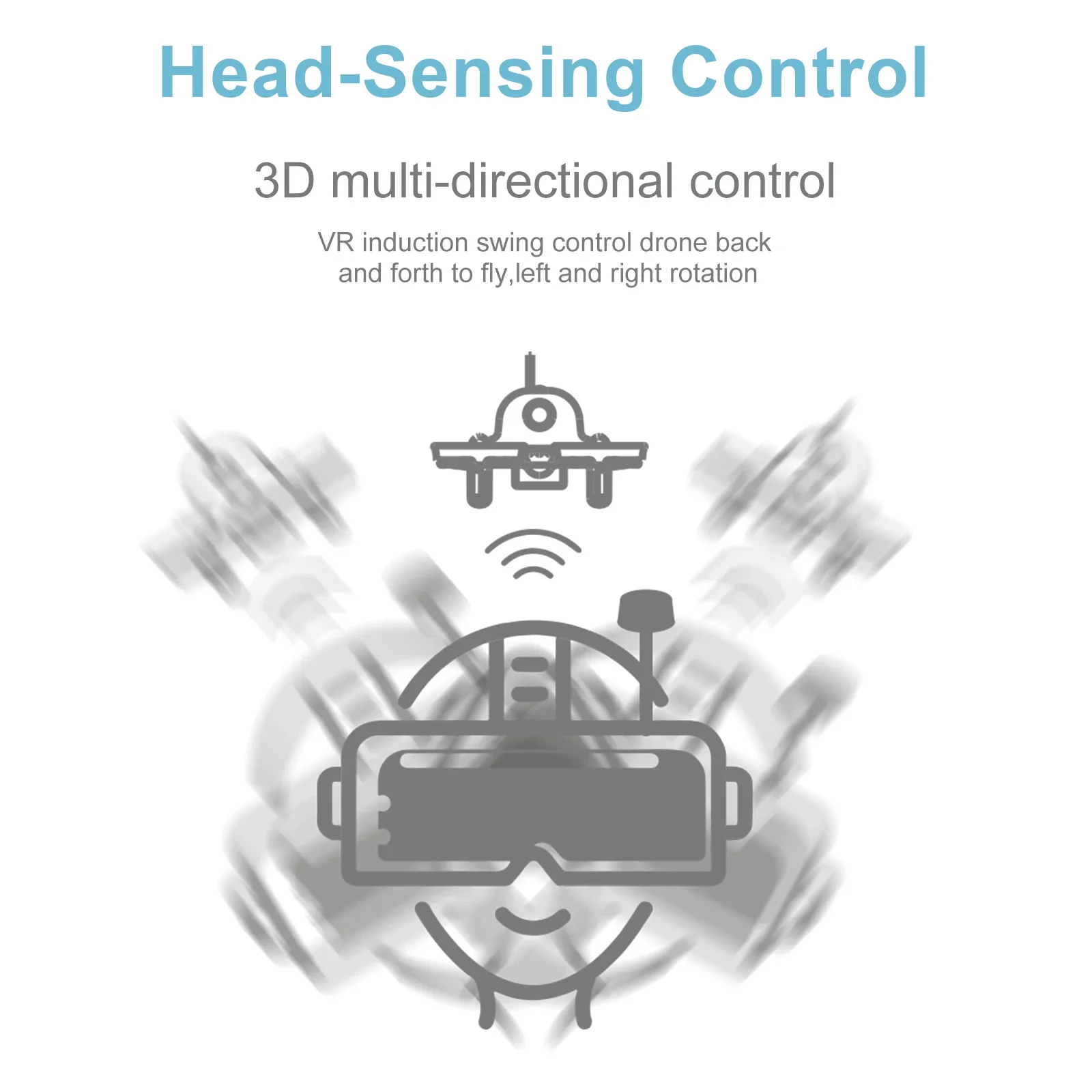 Function: 5.8GFPV video transmission; VR wearable function, headless mode, six-axis gyroscope, three-speed regulation, one-key take-off Accessories Aircraft, remote controller, mobile phone clip, battery, blade, charging cable, manual Suitable for children over 10 years old The size of the color box is 316*200*74mm Carton size: 475*336*625mm 18/ carton