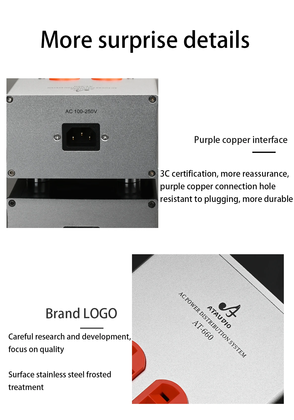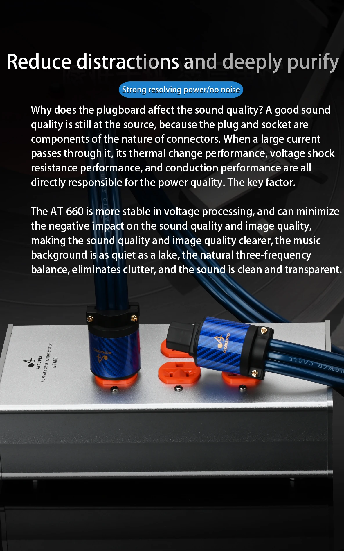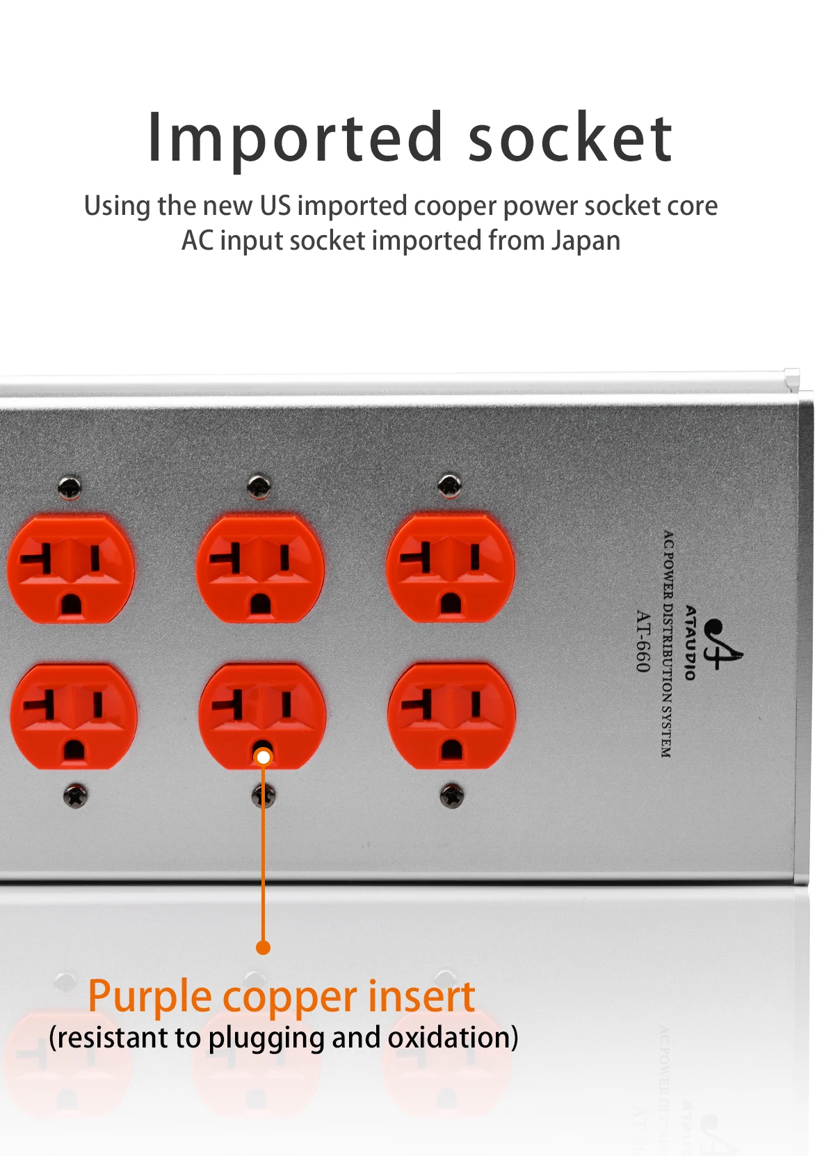 ATAUDIO HIFI Power Filter Audio Noise AC Power Conditioner Power Purifier Surge Protection with EU Outlets Power Strip