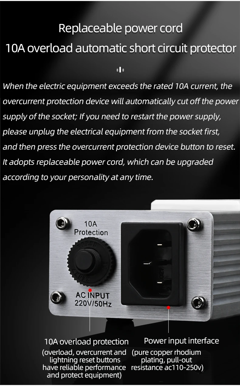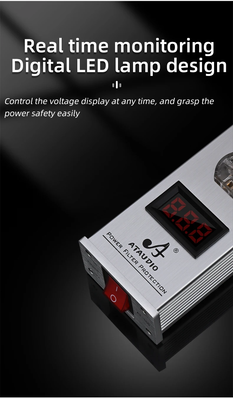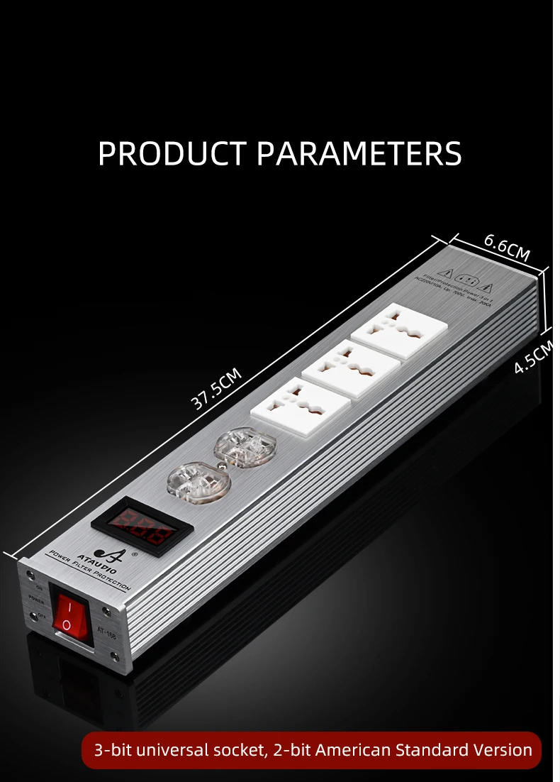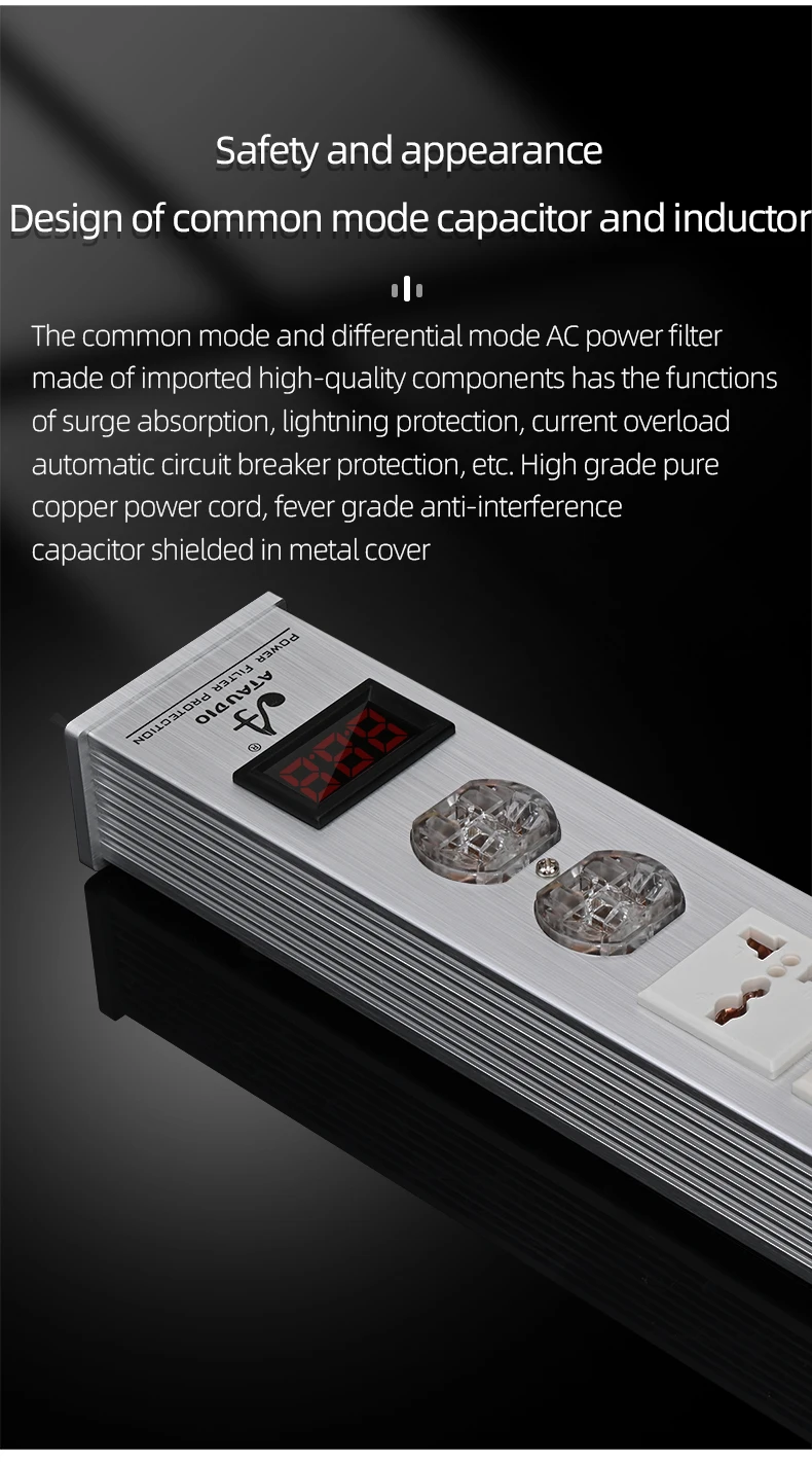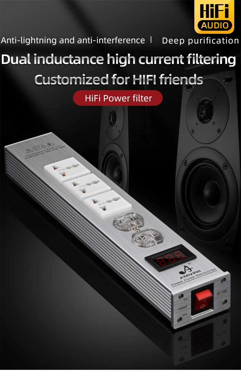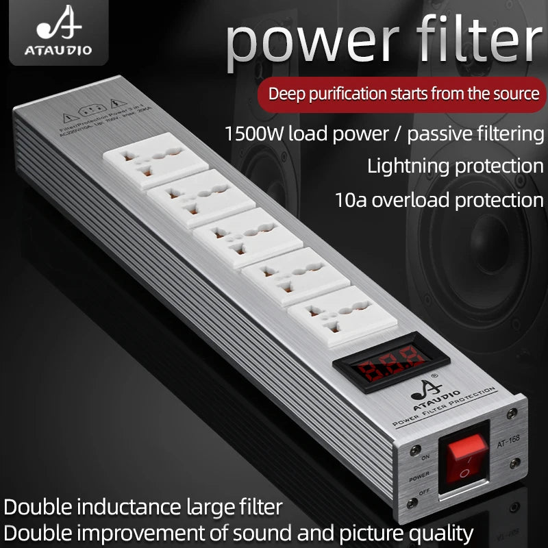 ATAUDIO Hifi Power Filter Power Power Conditioner Purifier Surge Protection with US Plug and Universal Socket