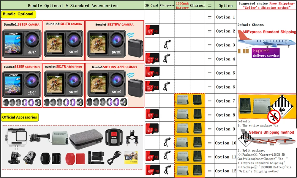 ■Option11=Bundle+ 64GB TF Card(U3 V30) +Microphone+ Charger + 1350mAh Battery