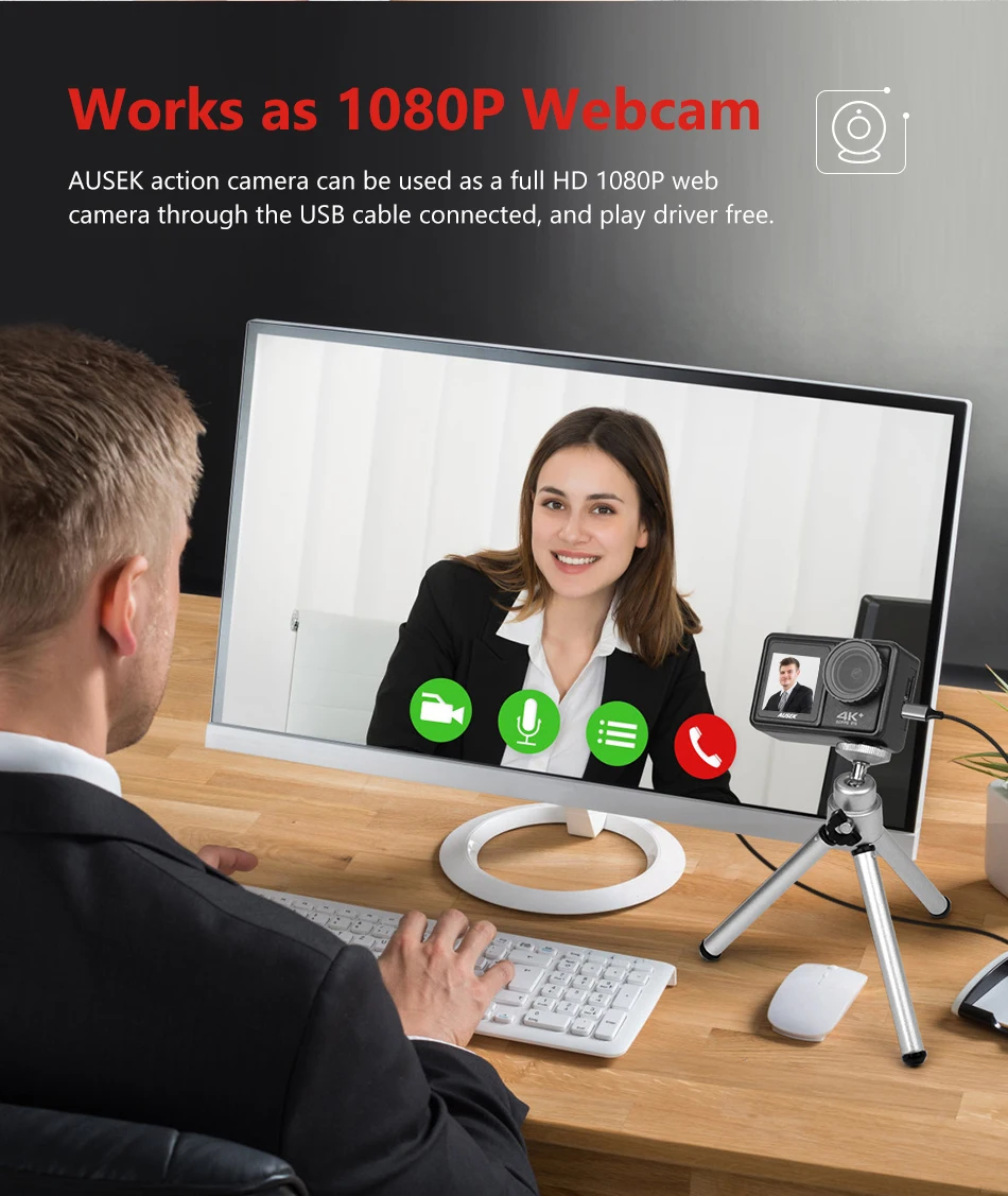 ■AUSEK action camera can be used as a full HD 1080P web camera through the USB cable connected, and play driver free.