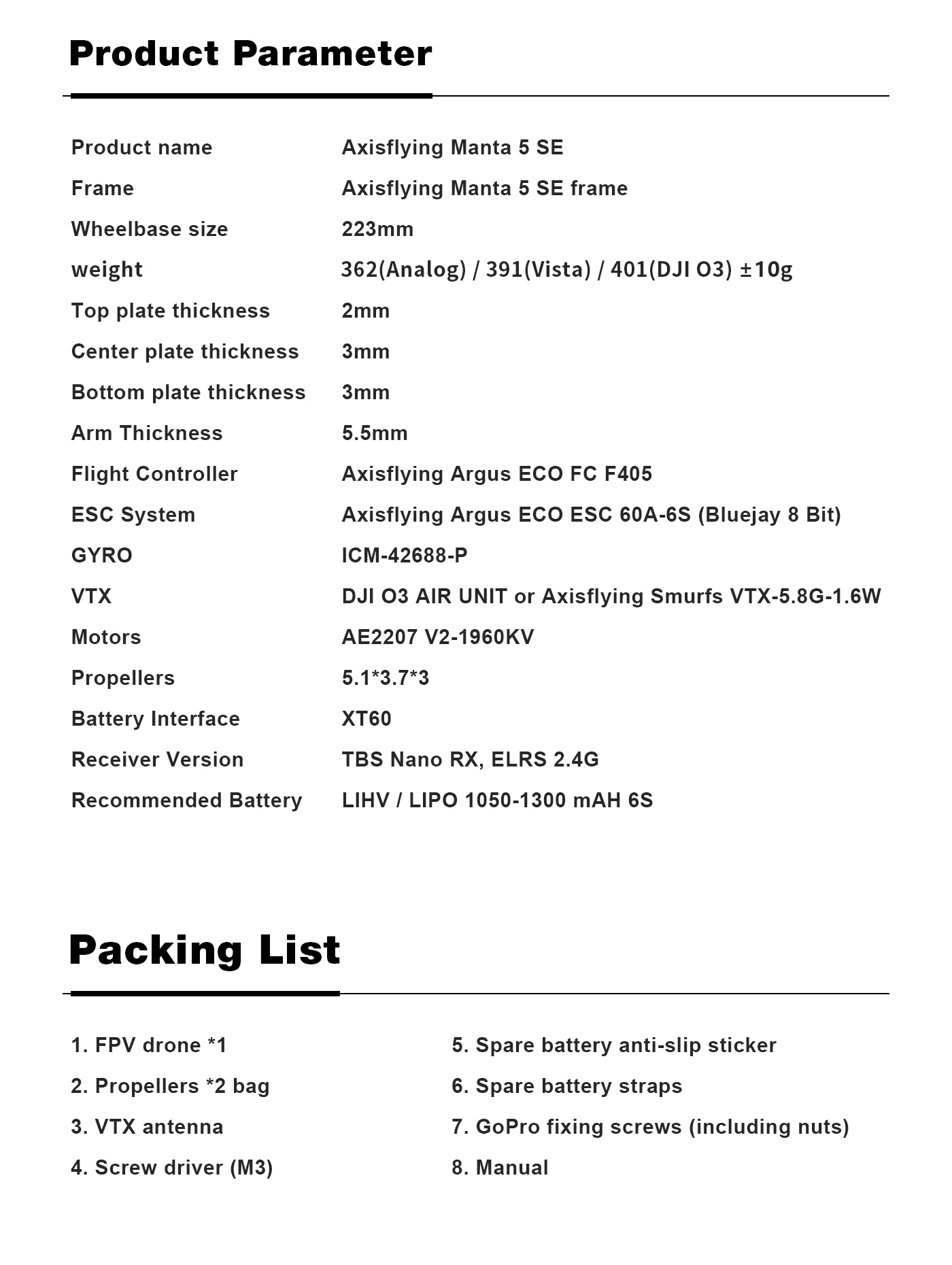 Axisflying Manta5 SE FPV Drone Kit Squashed-X Frame AE227-1960KV Motor with GPS for Cinematic Freestyle Long Range Drone