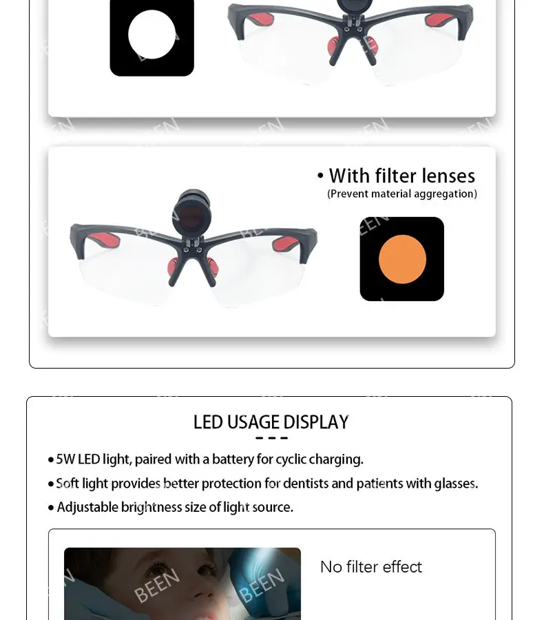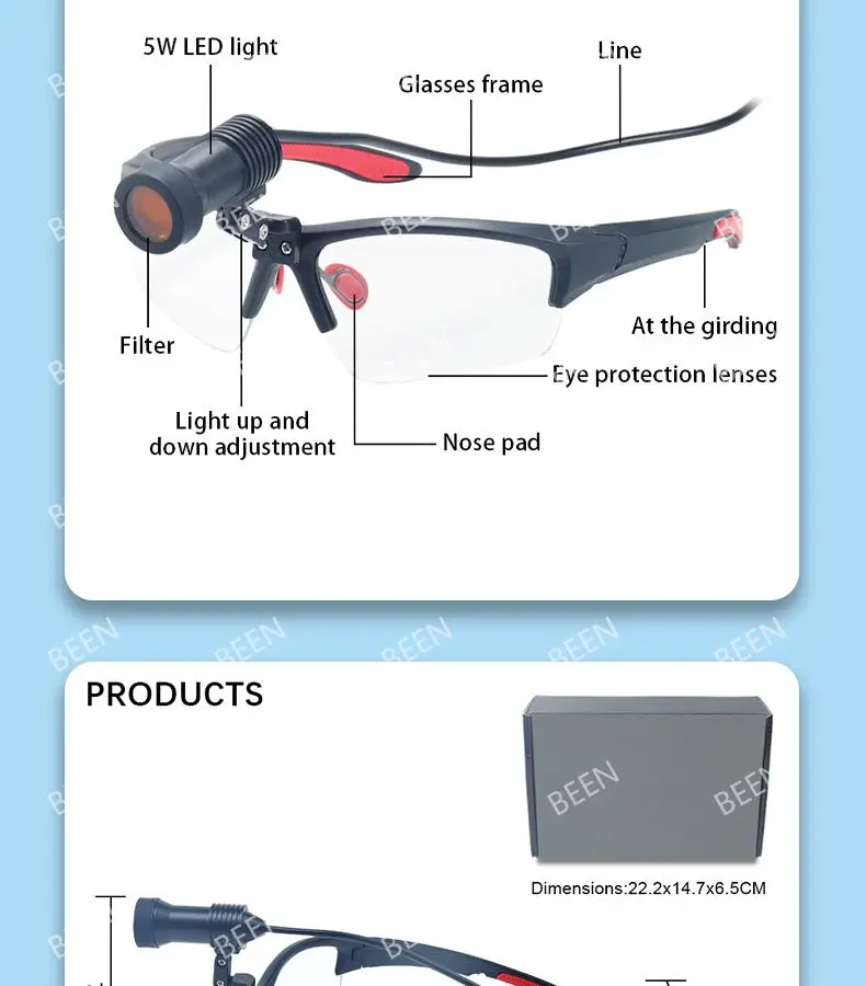 BEEN Halo Surgical Headlights 5W Dental Head Mounted Eyewear Spotlight Goggles Filter Lenses Zipper Cloth Packaging Box