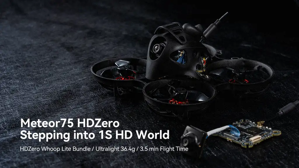 Stepping into HD world with 1S whoop quadcopter! The classical Meteor75 Brushless Whoop Quadcopter comes with Walksnail Avatar Mini HD VTX or HDZero Whoop Lite Bundle, bringing conspicuous images and exceptional visuals to your eyes and capturing details that make the footage look as exciting as the flight. Together with 1102 18000KV motors that feature strong propulsion, it gives pilots powerful and impressive results. Enjoy an immersive flight experience, and get the perfect shots with the new HD VTX system indoors and outdoors.