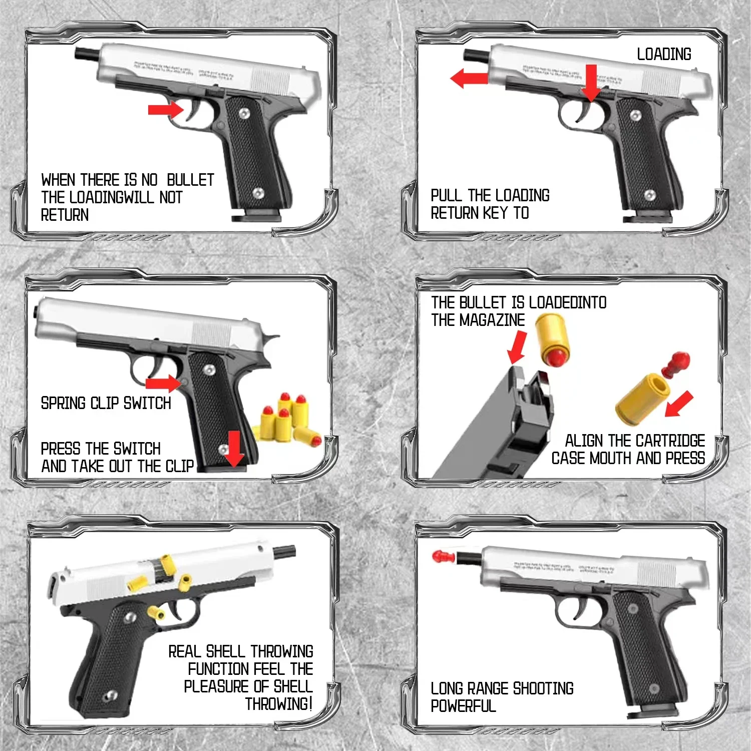 2. Mechanical shooting, no need to reload, just pull the alarm to complete.