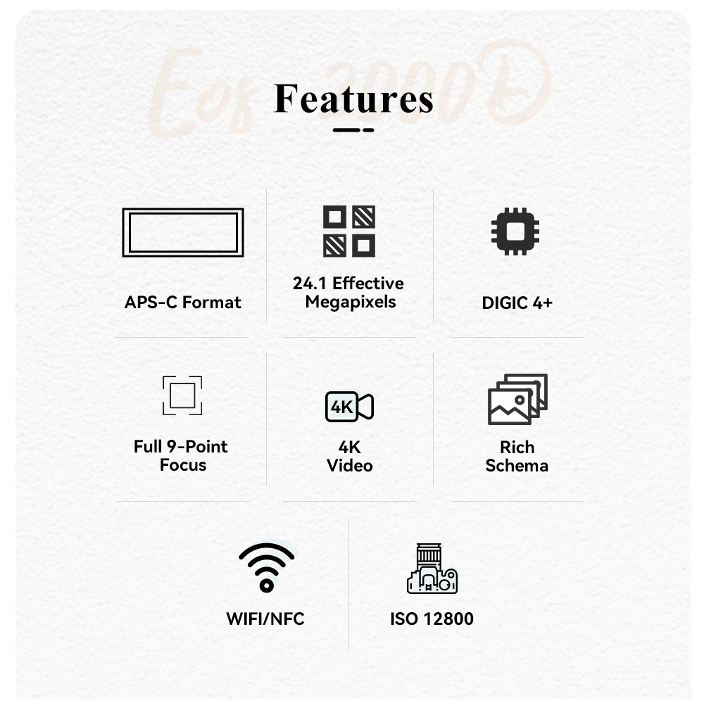 Canon EOS 2000D APS-C Entry-level DSLR Digital Camera With 18-55 MM F3.5-5.6 III Lens Flip Touch Screen 18 Million Pixels