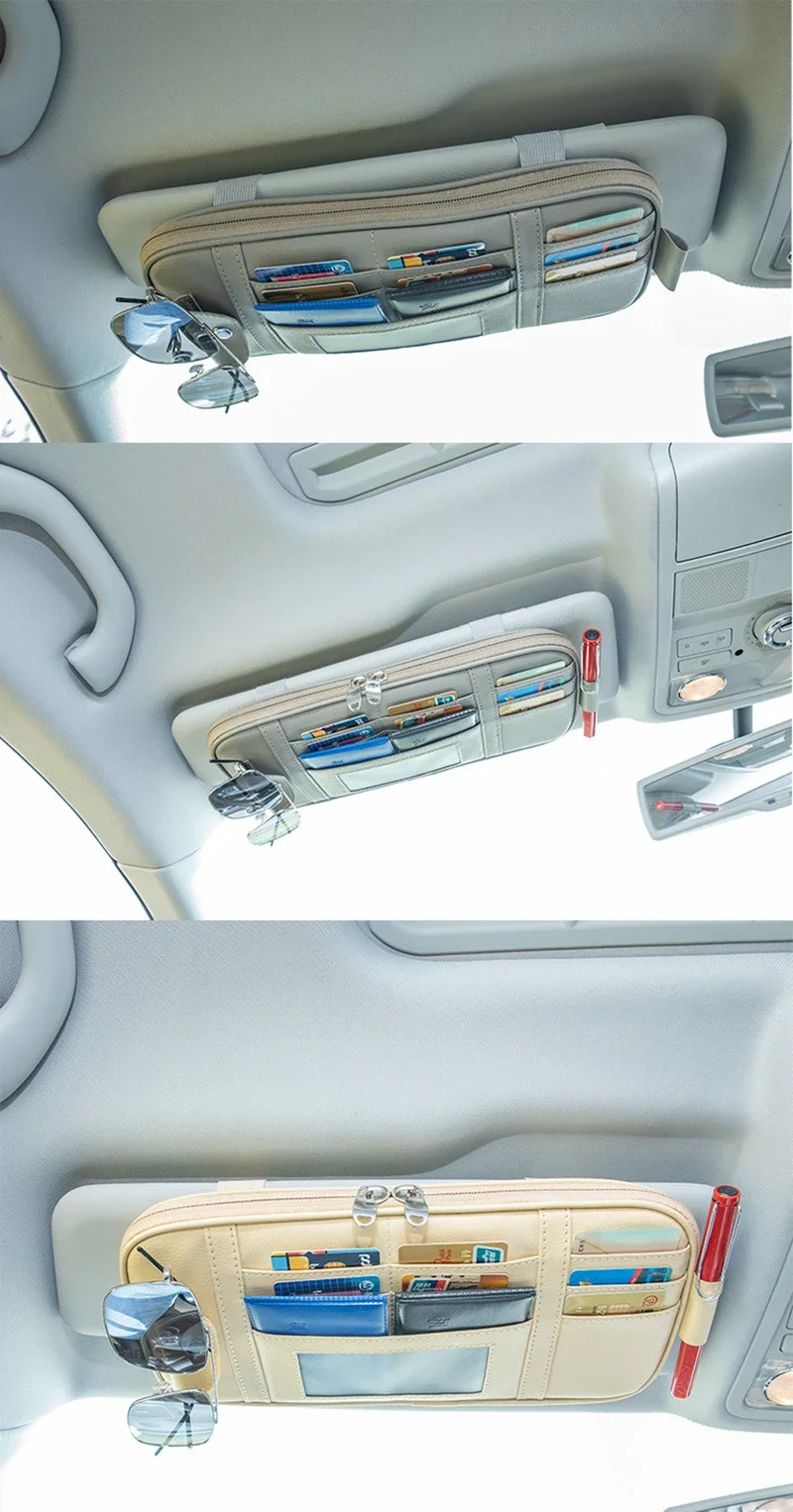 Car Sun Visor Organizer Storage Box Auto Sunglasses Clip Stowing Tidying Bag Bill Pen Card Holder CD DVD Organizer with Zipper