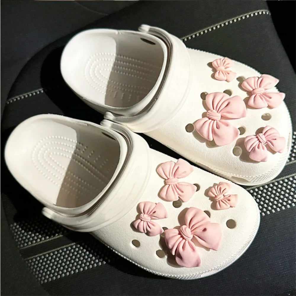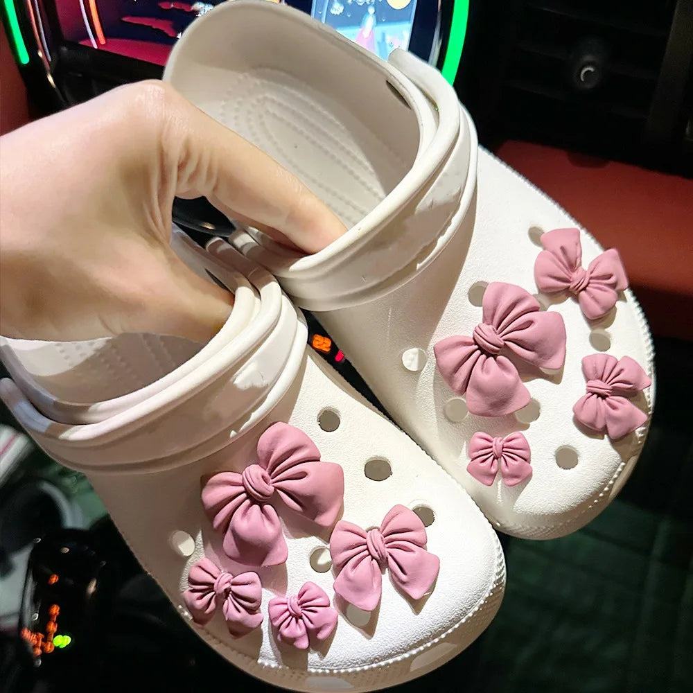 Cartoon Bow Tie Hole Shoe Charms Decorations Cute Rubber Purple Tie Shoe Flower Shoes Buckle DIY 3D Hole Shoe Accessories