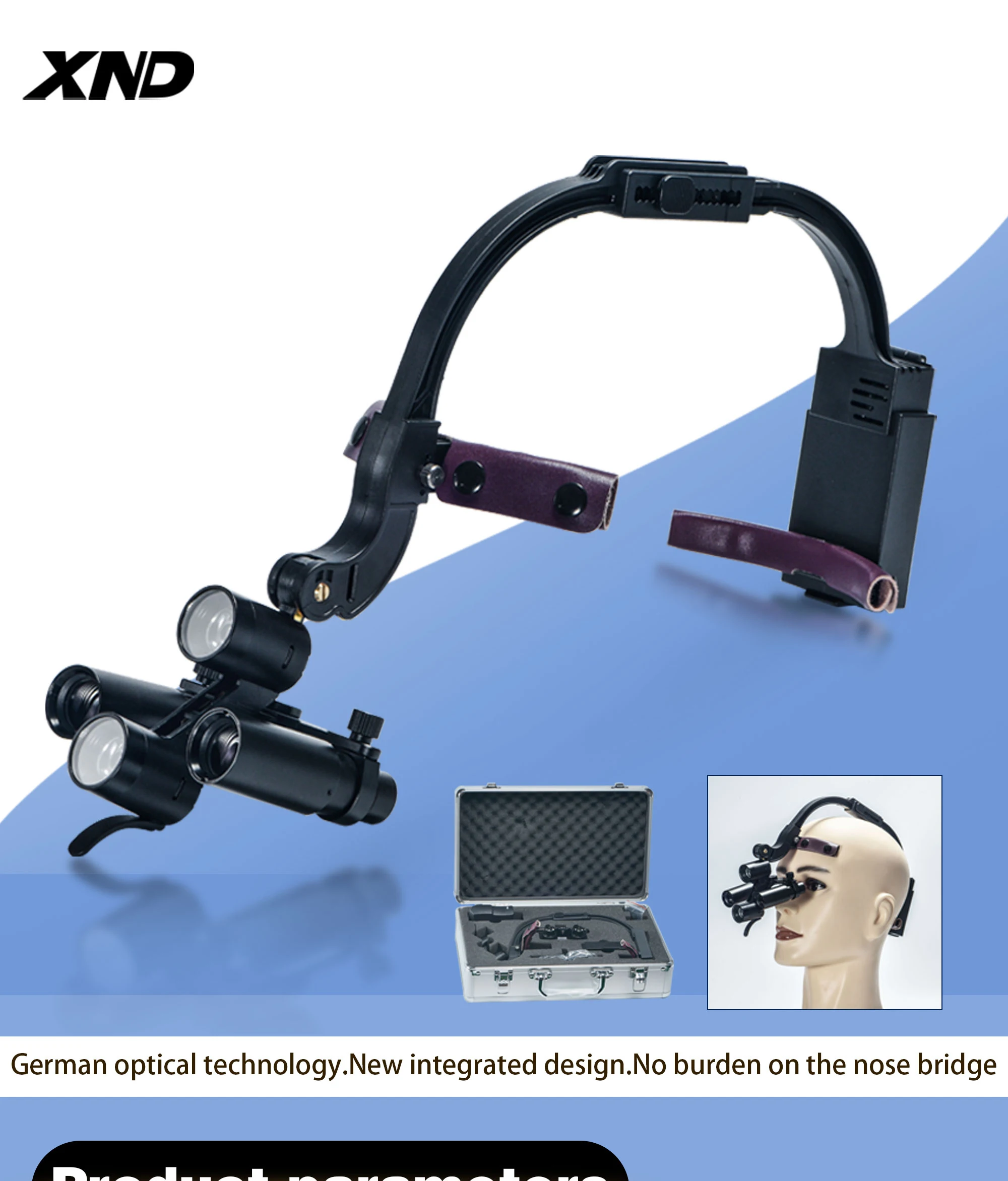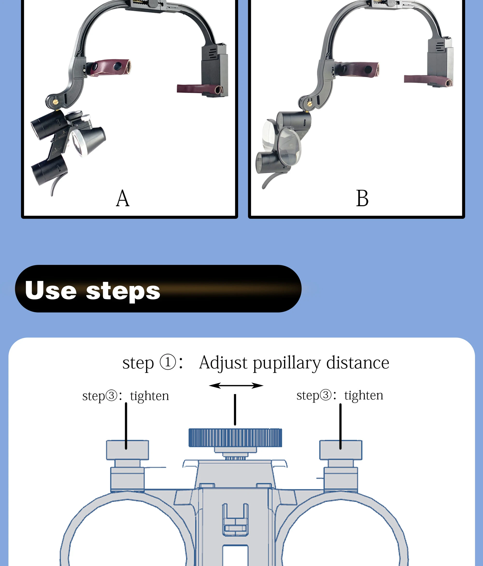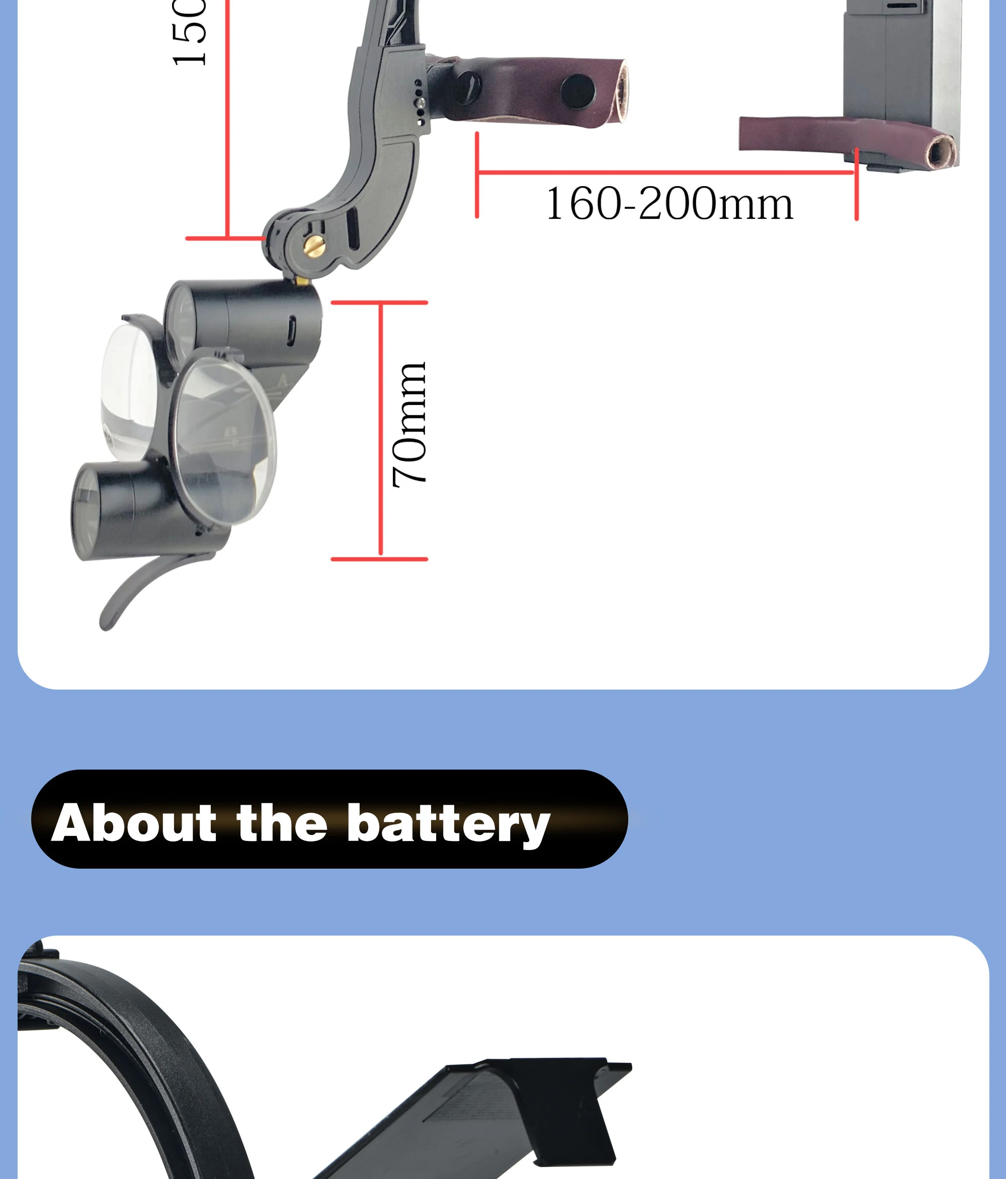 We highly recommend this head-mounted binocular dental loupe with wireless LED headlight for it is more convenient to work with. No wire ,no mess.