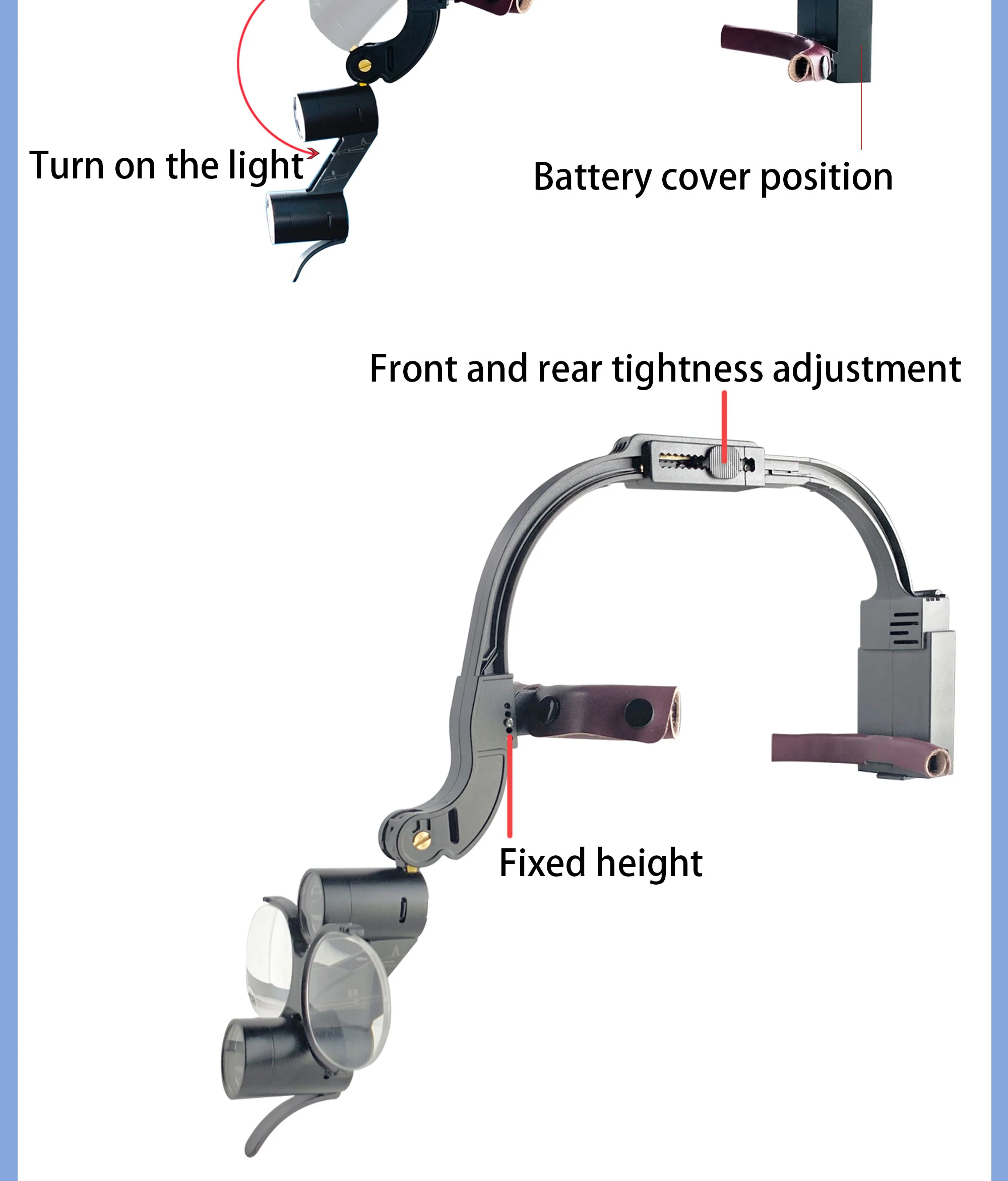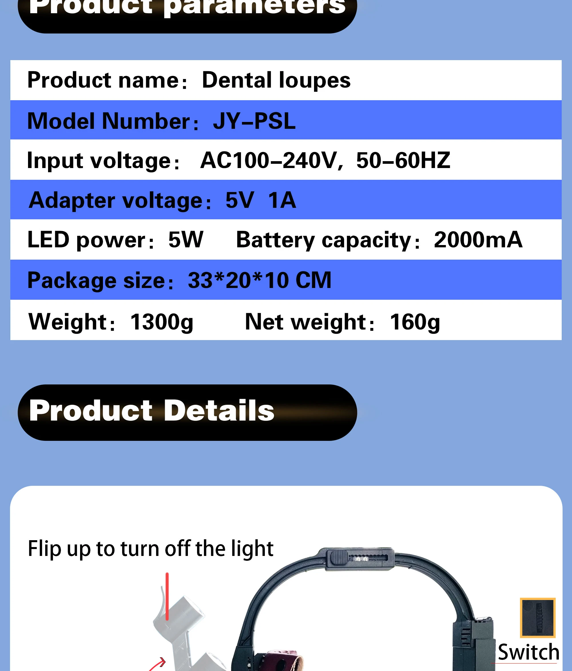 Dental 2.5X 3.5X 5X 6X Optional Loupe Magnification Binocular Surgical Magnifier with Headlight LED Light Dentist Medical Loupes