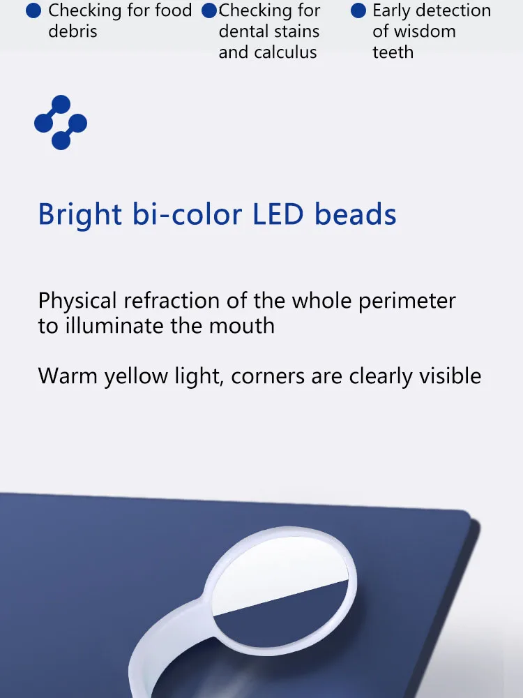 3.Instructions: the LED dental mirror can be applied repeatedly after disinfecting, you can disinfect it with alcohol, not high temperature; It is recommended for one person to use, so as to prevent crossed infection and maintain hygiene.