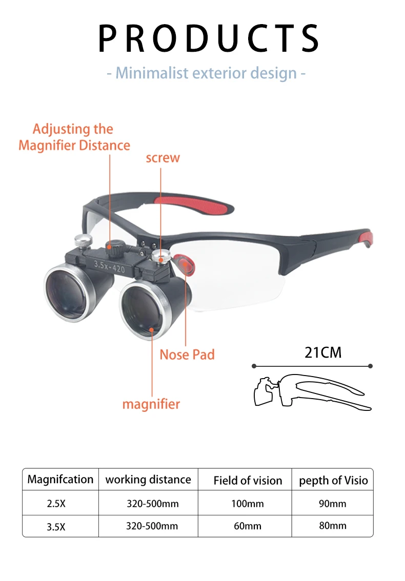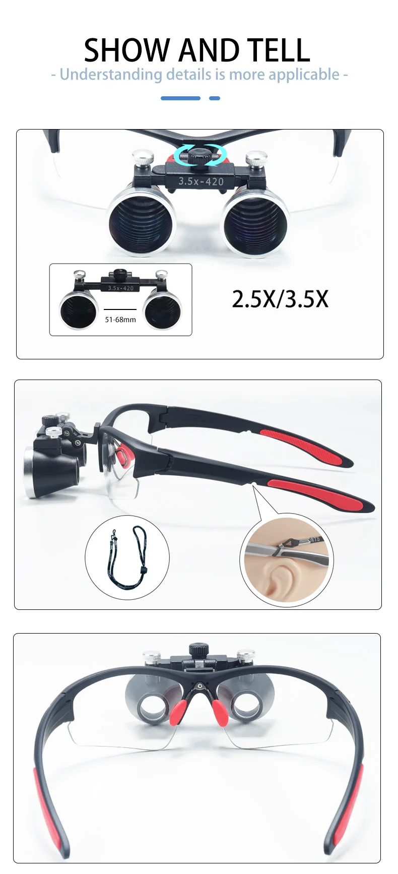 Dental Loupes 3.5x2.5x 320-420mm Goggles Lab Medical Magnifier Dentists Surgical Optical Lens Magnifying Glass Blue